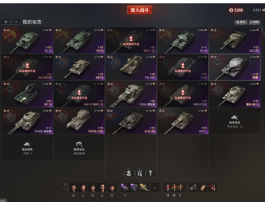 装备描述:账号银币充足,不用担心!无银币的号我们按时替换下来,如若确无银币的情况下:7-6-5-4-3级小车,可以卖个2-3台。8级及以上车辆严禁买卖,毁号和使用违规插件脚本这些东西导致帐号被封的,将通过登录时间、租号注册信息,支付宝信息和电脑ip地址等溯源,依法追究帐号价值3倍赔偿责任,要租视为认同上述协议,本人律师,租号为副业,愿大家都好。可随意开银币加成和经验加成,1小时1次。 11级BZ-79 ,谋划者。10金:酋长MKVI,白云,116F3,虎鲸,MBT-B,喷火麒麟,哥特勇士,268V型,183,伏羲155等。9金19台:SDT-58,cc-46p,熊,埃里希,DZT-159,590,Su-122v,752,维钦托利,守望者,金牛座,udes033,E77等。8金48台:法蝎sfac105,ION工程,白龙,BZ-176,XM57,bz-74-1,Vz68s等。