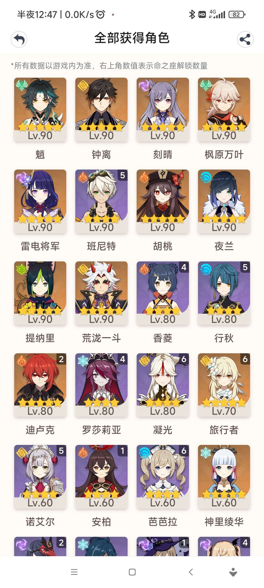 90级雷电将军,钟离,胡桃,万叶,五命班尼特不可点六命
