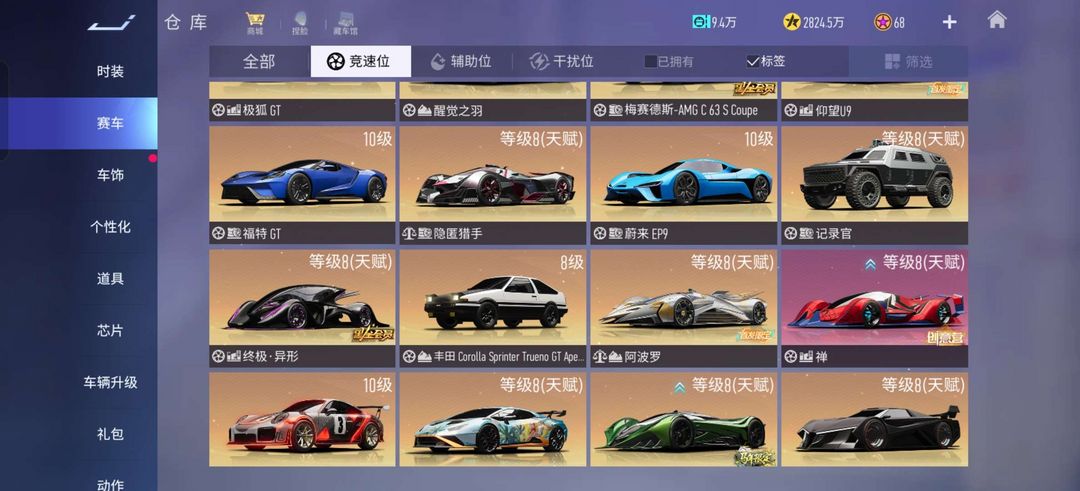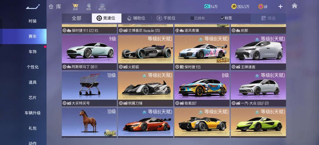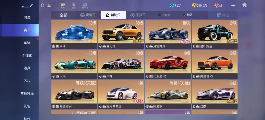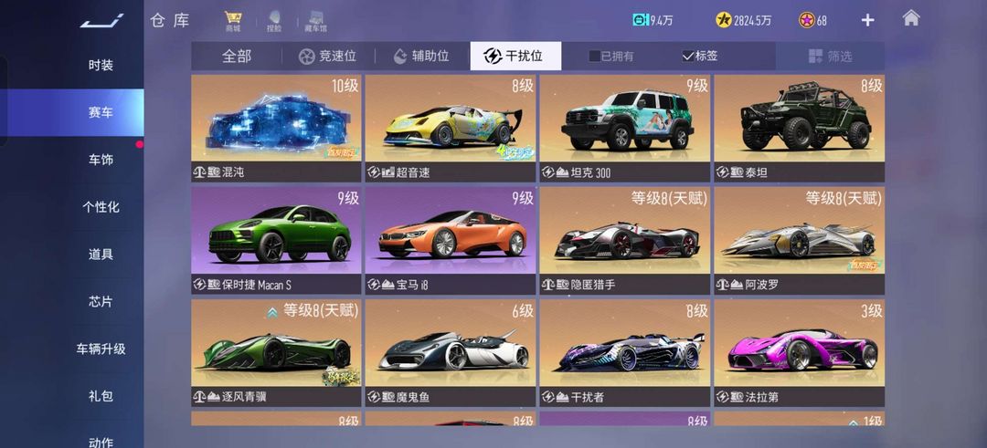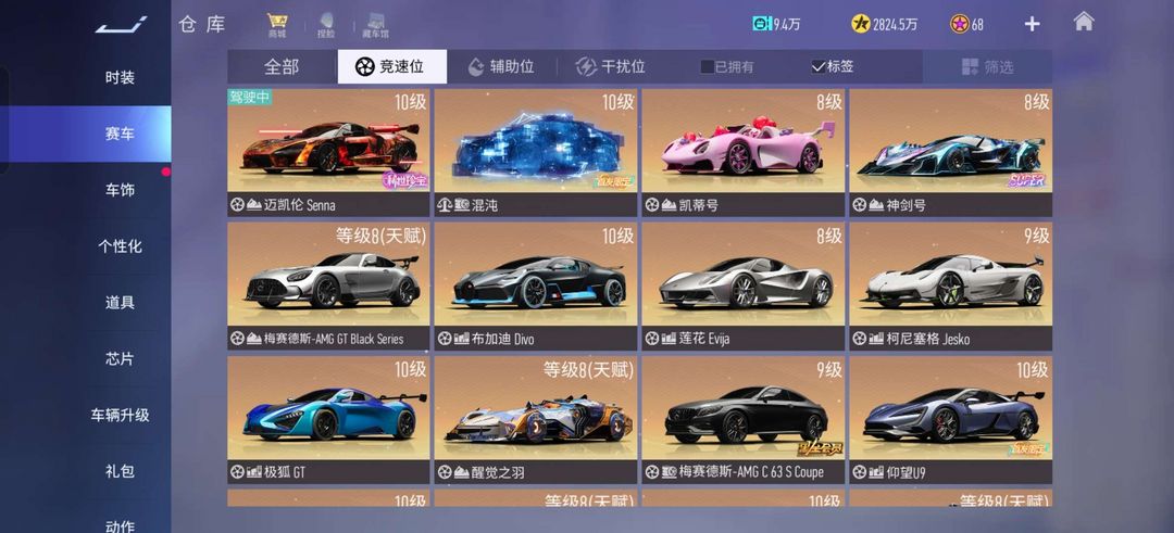 各类主流竞速,干扰,辅助都有一些些,塞纳全皮,都有
