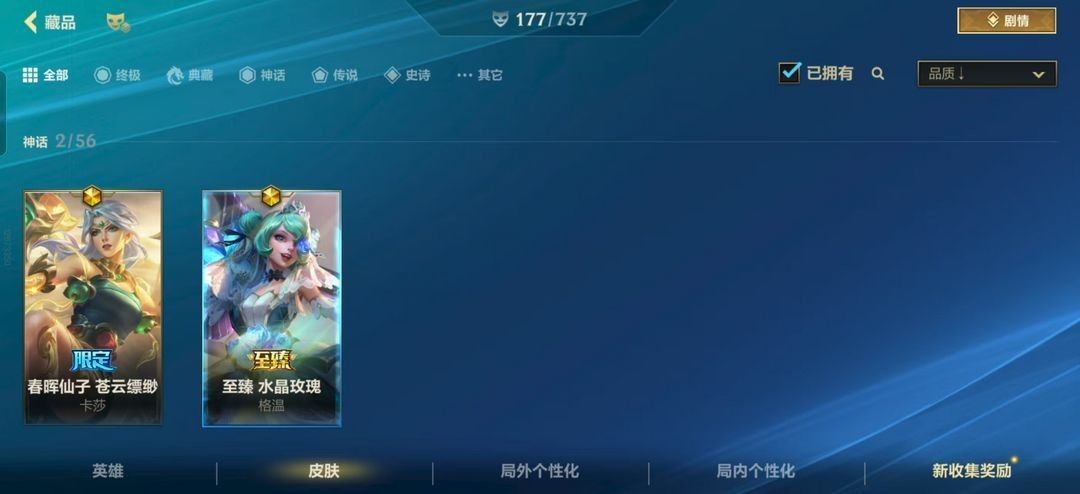 钻石可排位马年限定永恩,177皮,11传说,2神话,格温水晶玫瑰,蔚杰斯水晶玫瑰