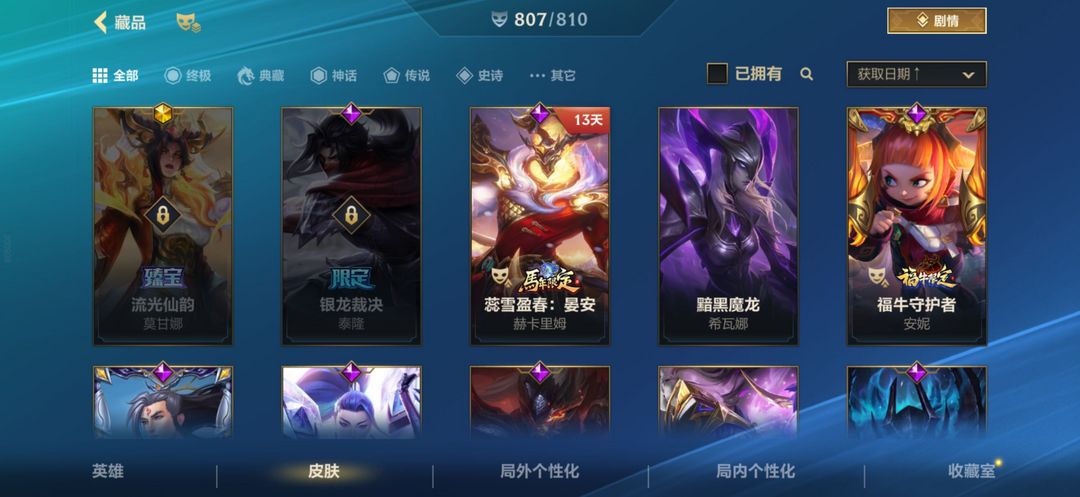 808全皮肤/金名/天幕/时空探全满/终极金克斯/终极永恩/新春全套/特效天花板/19万藏/点券勿动