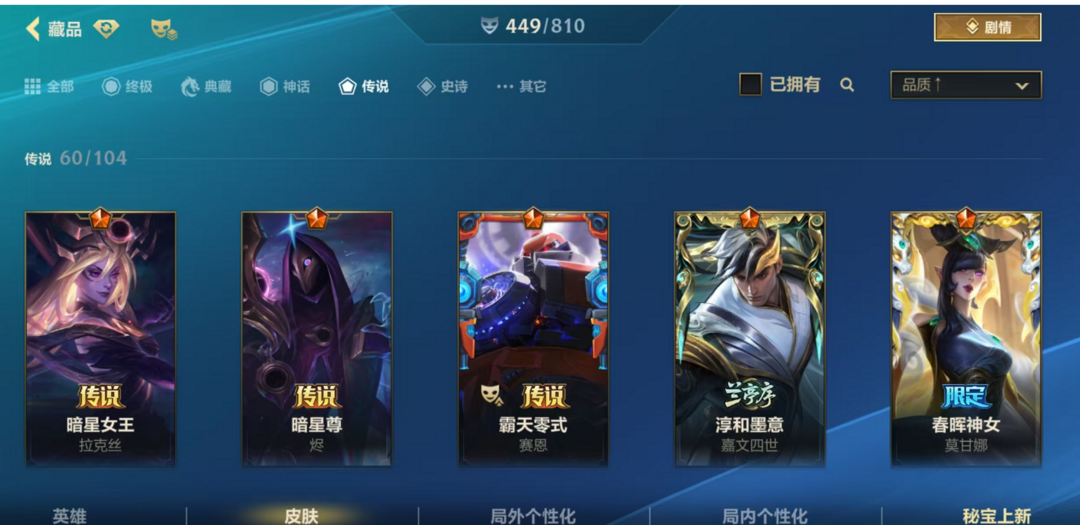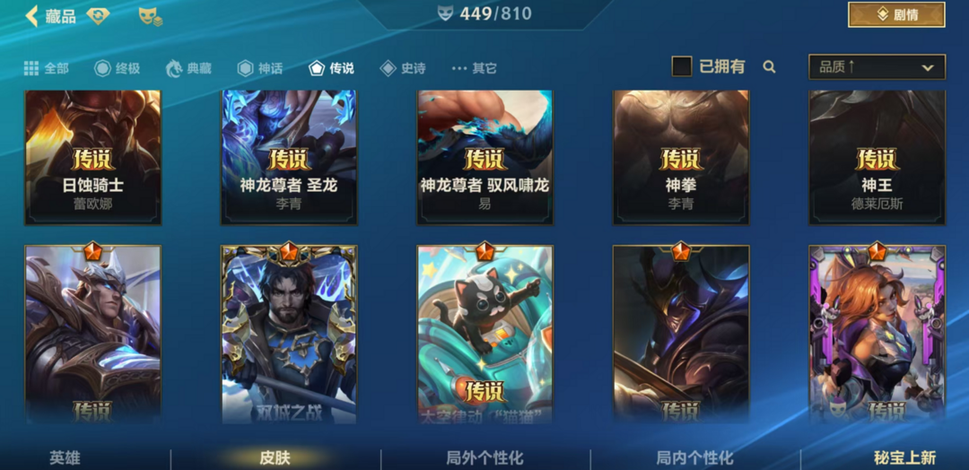可排位449皮肤60传说✨神话斗魂德莱文龙瞎蛇年拉克丝✨双城杰斯兰亭序斗魂红夜亚索天煞劫神王神龙尊者