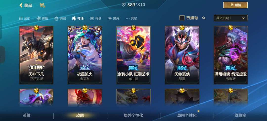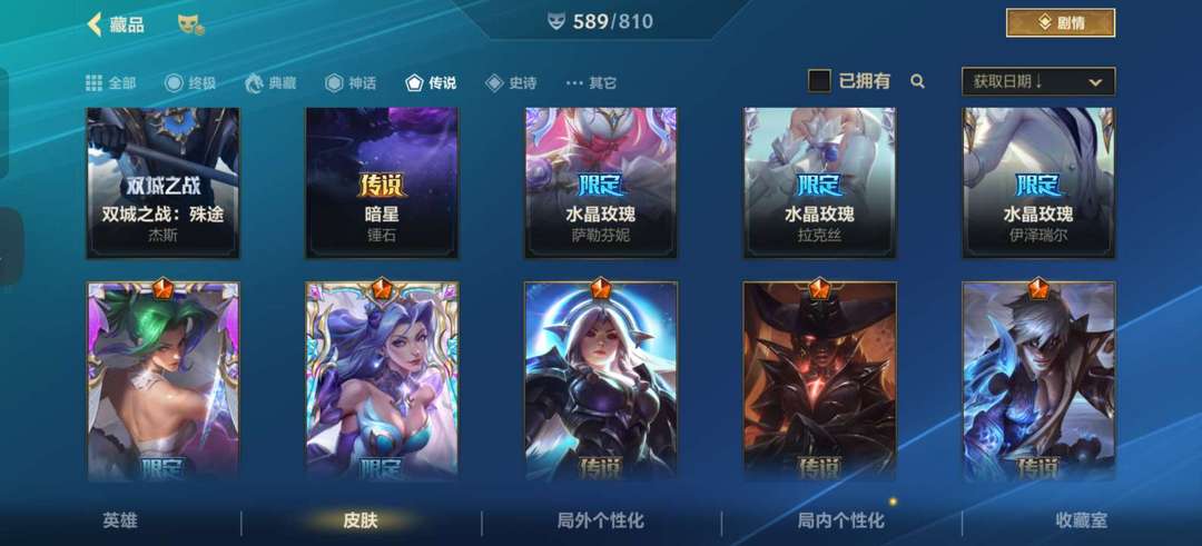 全英雄 589皮 7神话 81传说 兔年 新春 虎年 兰亭序 水晶玫瑰全套除至臻