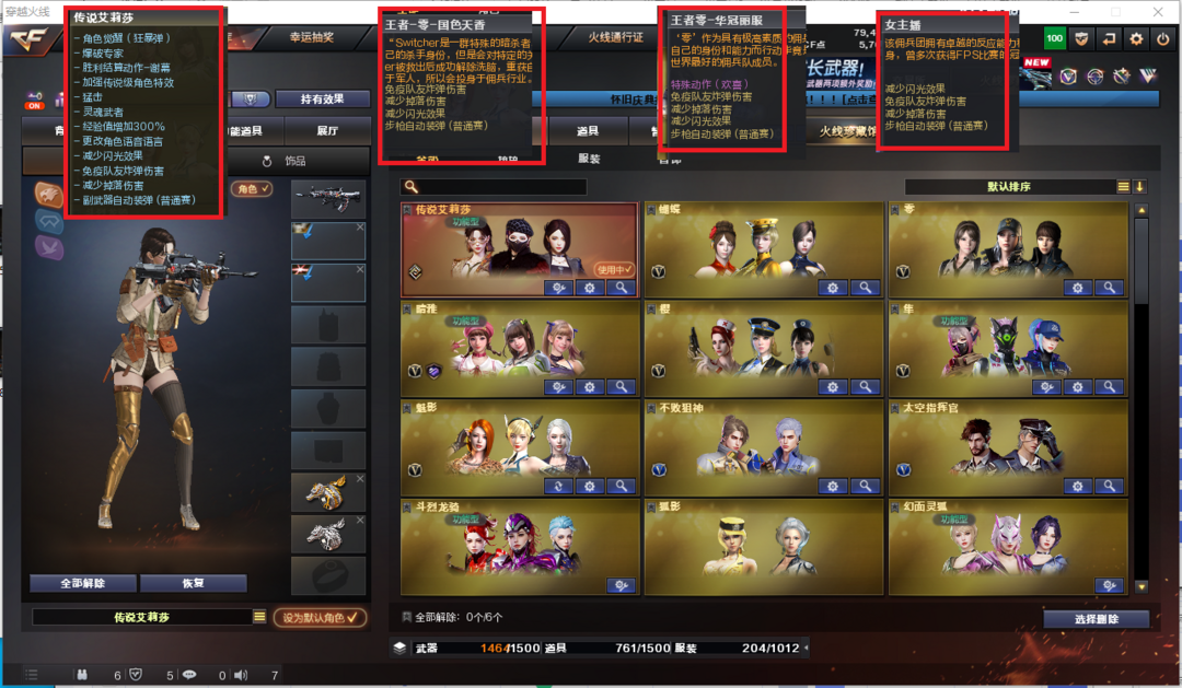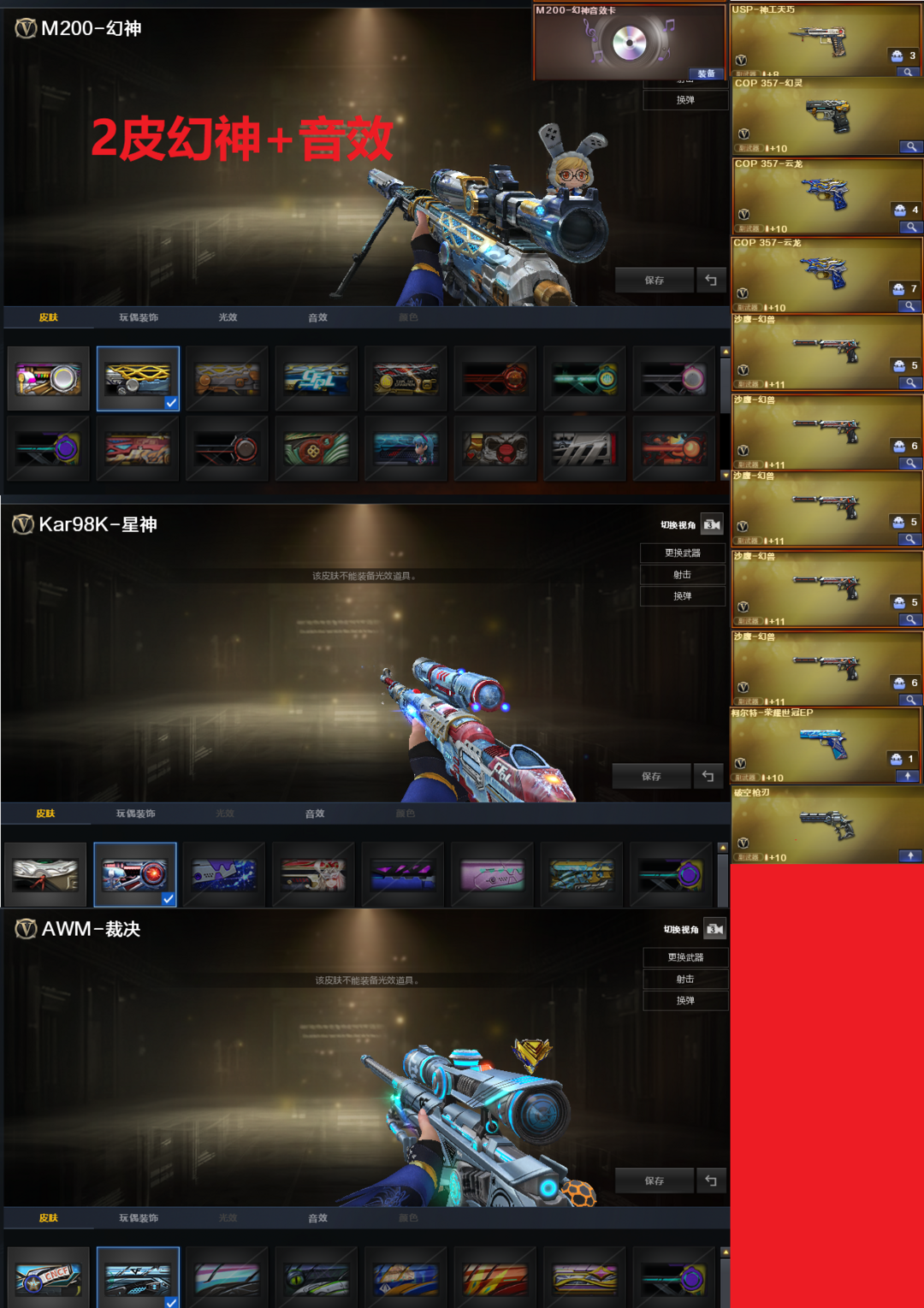 装备描述:排位:可以、、、、、、、、、、、、爆破四防:幻神2皮+音效(周瑜、动感闪耀皮肤)、王者风神、98K星神、、、、、USP神工天巧、COP幻灵、2个COP云龙、破空枪刃、EP荣耀柯尔特、、、、G36幻影、加利尔ACE-天袭、QBZ-幻兽、FAMAS G2-天戎、传说辉光、传说夜影、白虎、QBZ冠军蔷薇、炽芒蝶刃、、、幻神音效、蔷薇音效、白虎音效、毁灭音效、雷神音效、火麒麟音效、、、5套幻兽、2套雷霆、1套雷暴、2套神工天巧、1套云龙、、、爆破四防(传说艾莉莎、晴雅、隼、王者国色天香、王者华冠丽服、女主播)