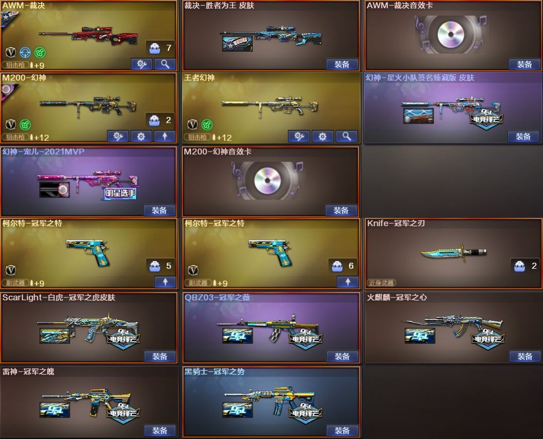 100豆⭐幻兽3套宠儿星火小队幻神胜者为王裁决音效卡⭐冠军之虎2把冠军之特薇刃USP雷暴3COP