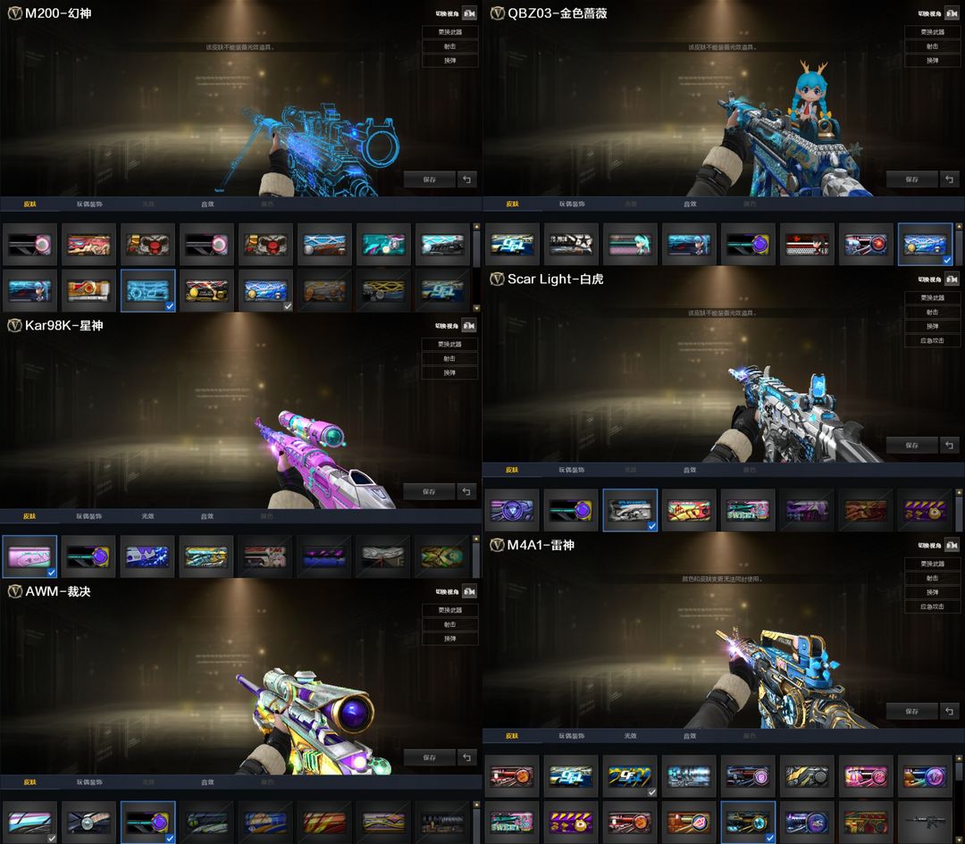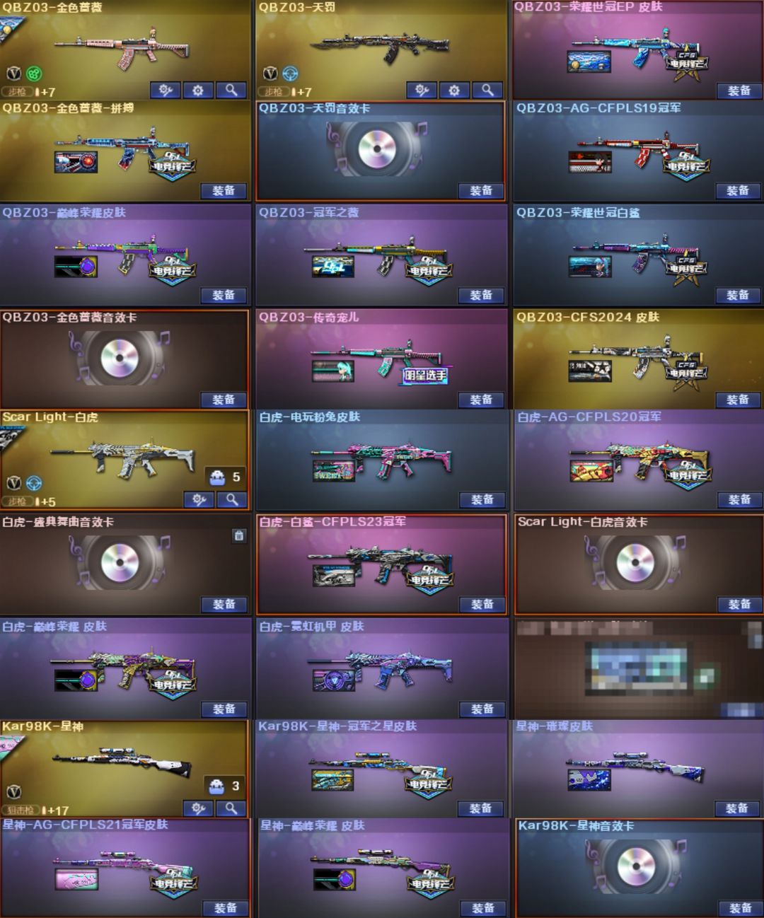 光海夜岚天袭EP全套妮妮幻影金名⭐幻神卡EP星火13皮裁决音效卡巅峰⭐白虎白鲨5皮QBZEP冠薇8皮
