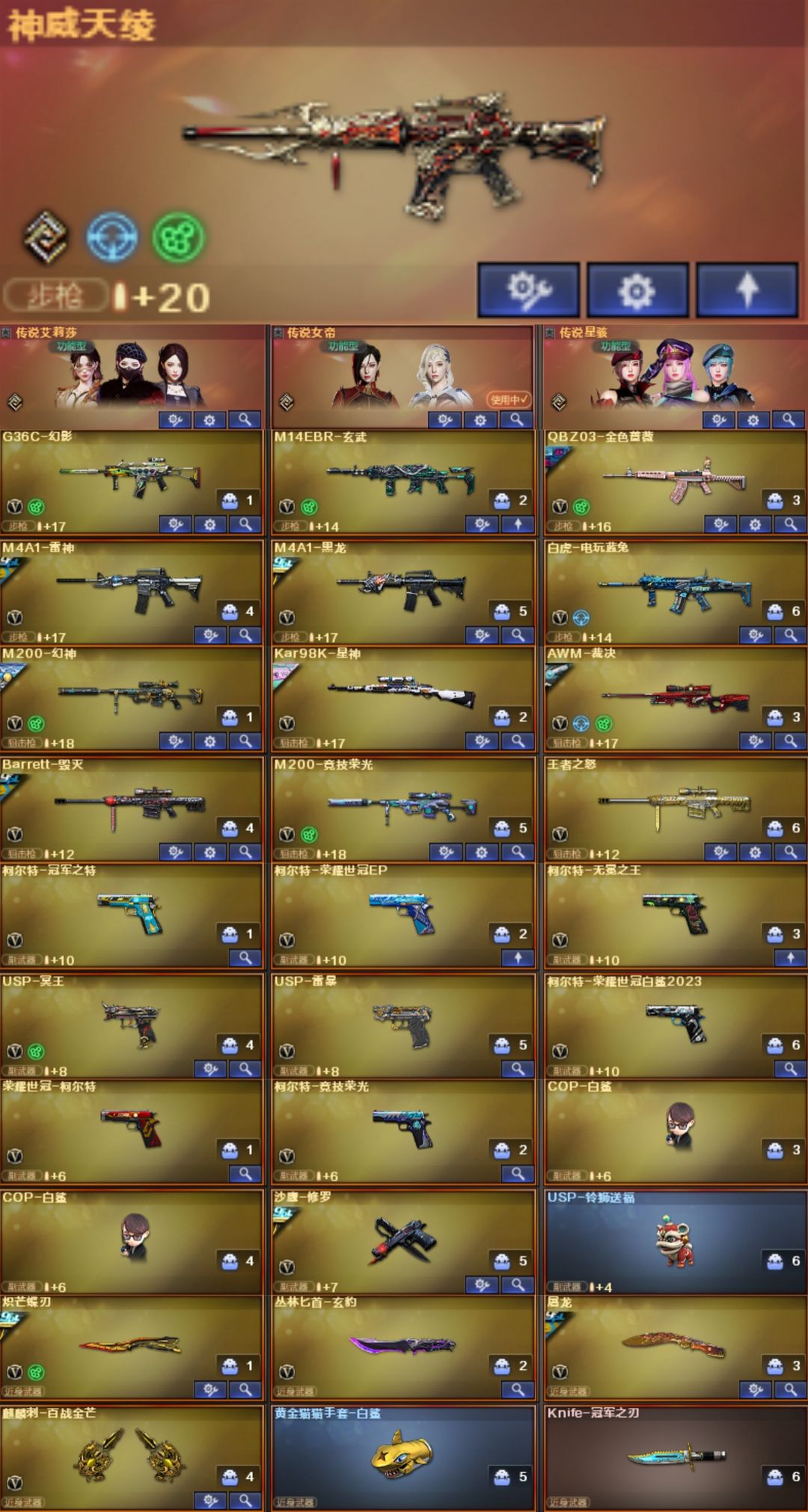 神威天绫女帝星骇幻影⭐幻神卡EP宠儿白鲨7皮裁决卡3皮⭐星神卡冠军三皮⭐QBZ2皮⭐冠特冥王无冕冠刃