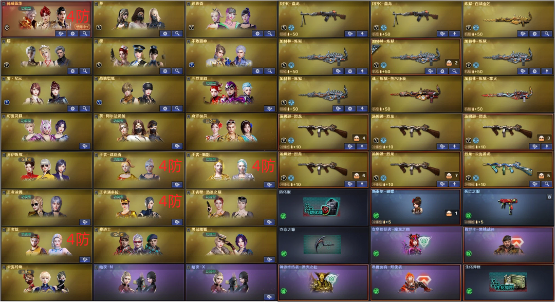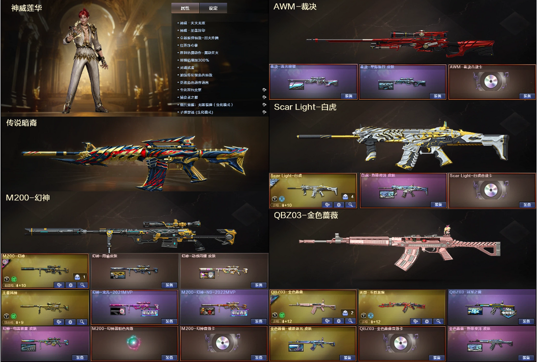 传说暗裔4防神威莲华✅幻神6皮宠儿音效+裁决白虎QBZ三件套✅白虎朱雀8满副炽芒✅炼狱6盘+蝴蝶6烈
