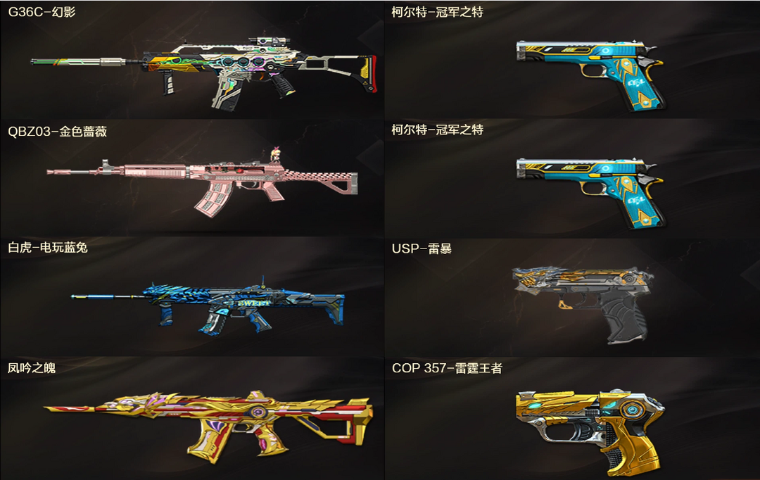 传说幽瞳♉幻神4皮念旧音效+星神枪娘音效+裁决♉QBZ蔷薇白虎幻影+4质量手枪炽芒蝶刃♉蝴蝶枪娘6烈