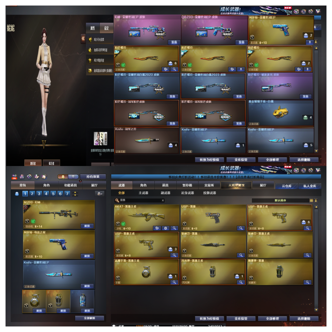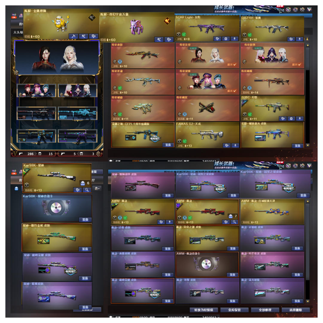 幻神70KG-17皮❤️白虎+幻神光海夜岚❤传说女帝影煞星骇❤天袭❤裁决音效卡7皮❤金色蔷薇N9