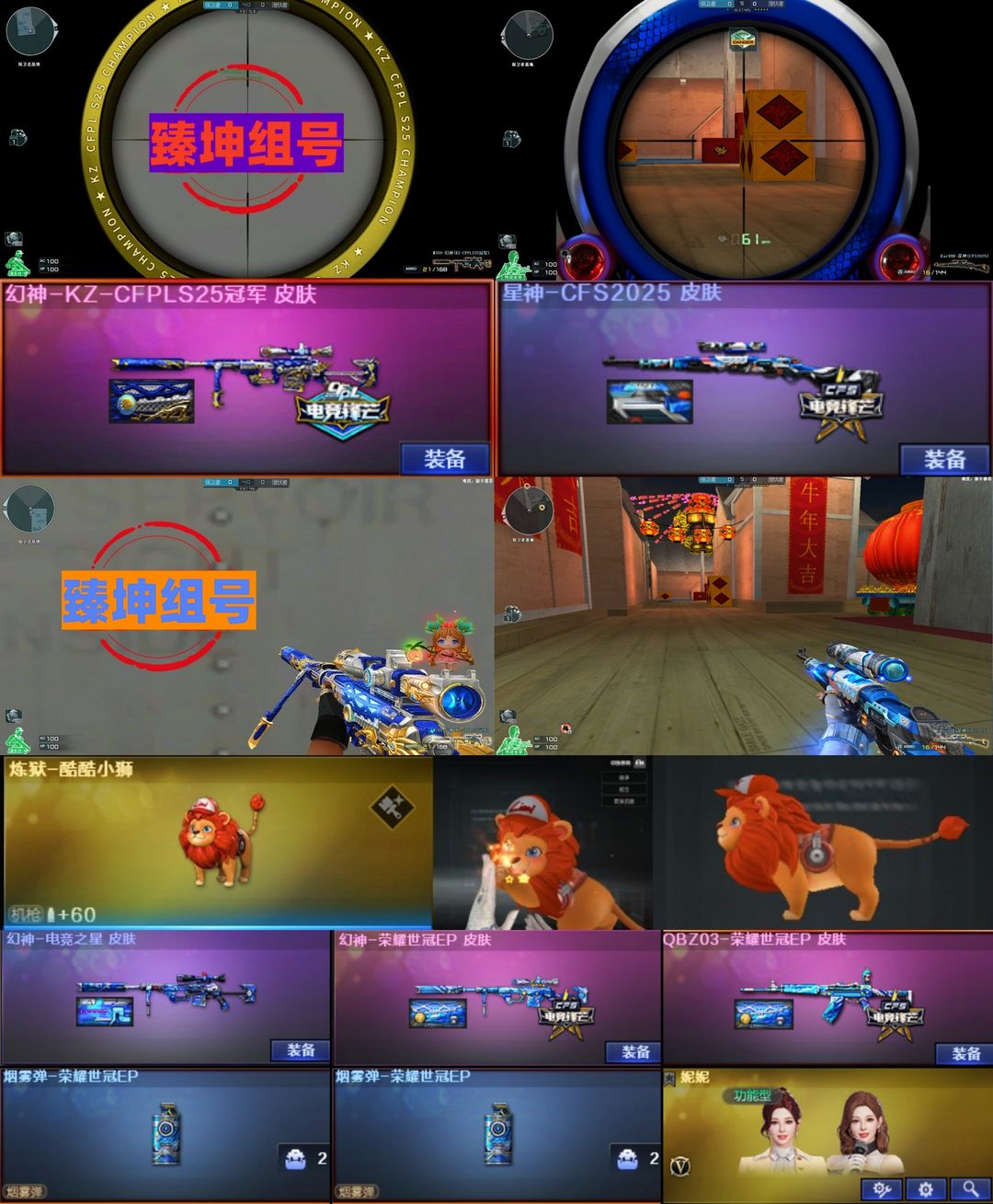 枪王4 酷酷小狮妮妮星神25+KZEP幻神①③皮电竞AG星火白鲨✨绝版幻兽套x⑦白虎百战冠军星裁决卡