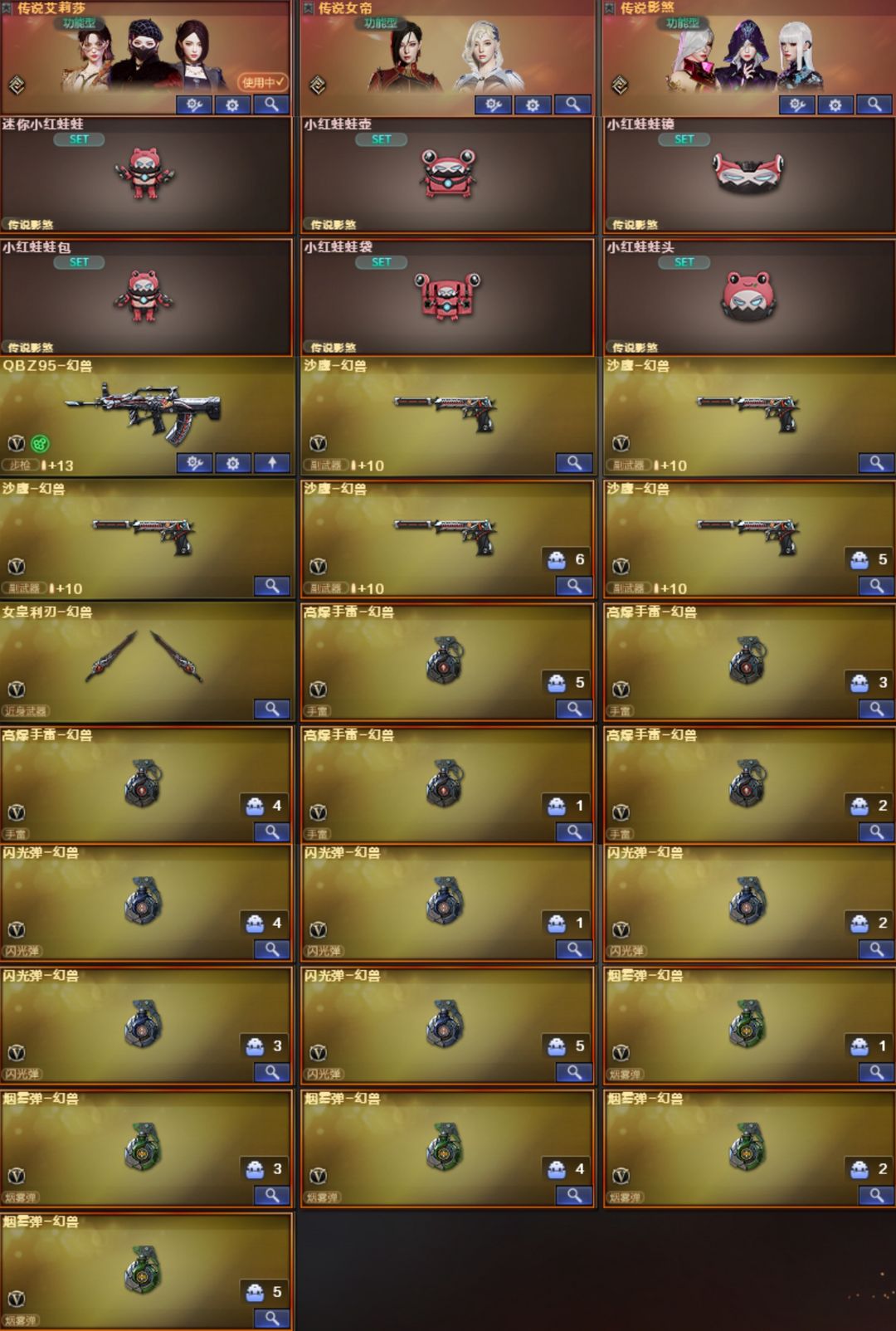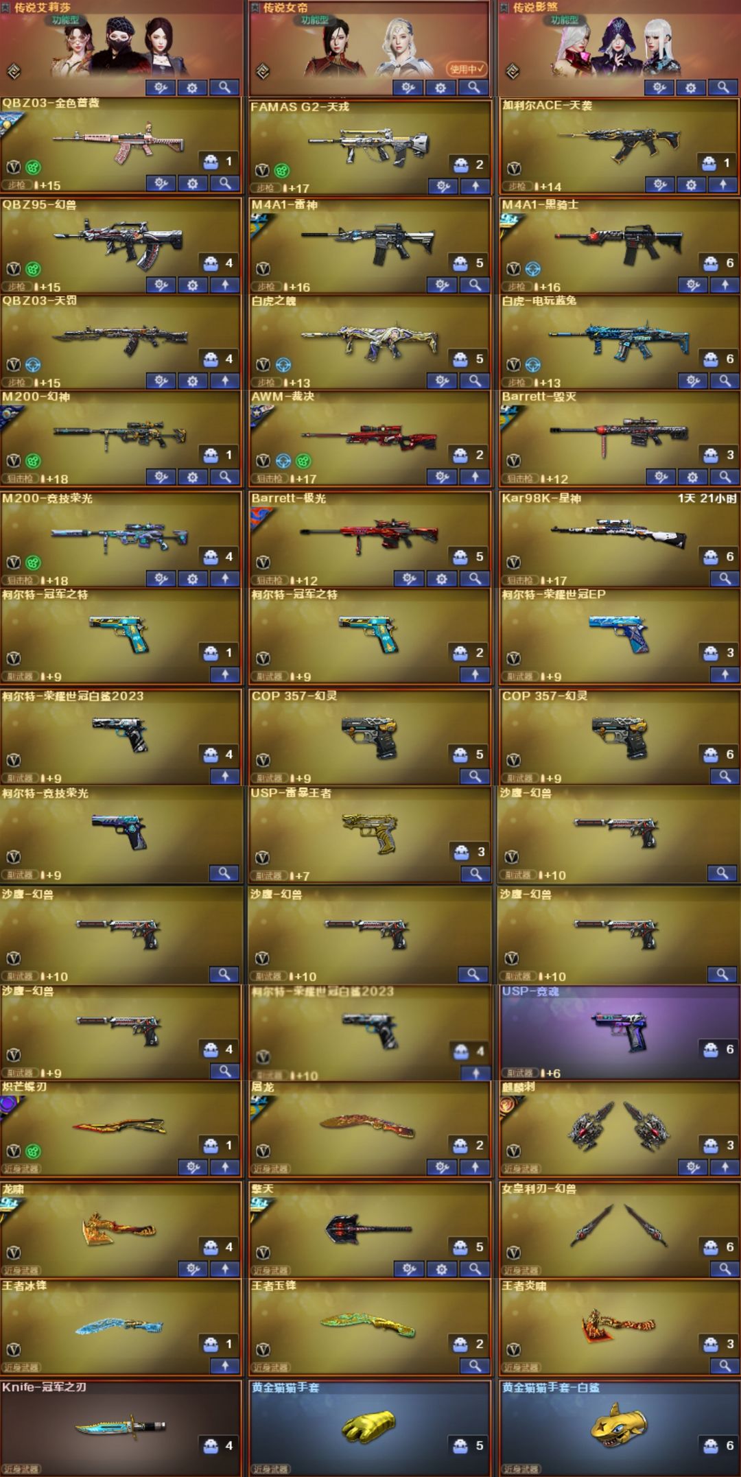 5套幻兽女帝妮妮天戎天袭金名⭐幻神KZ星火EP4皮裁决音效卡⭐QBZ虎鱼EP4皮白虎⭐EP特2冠特