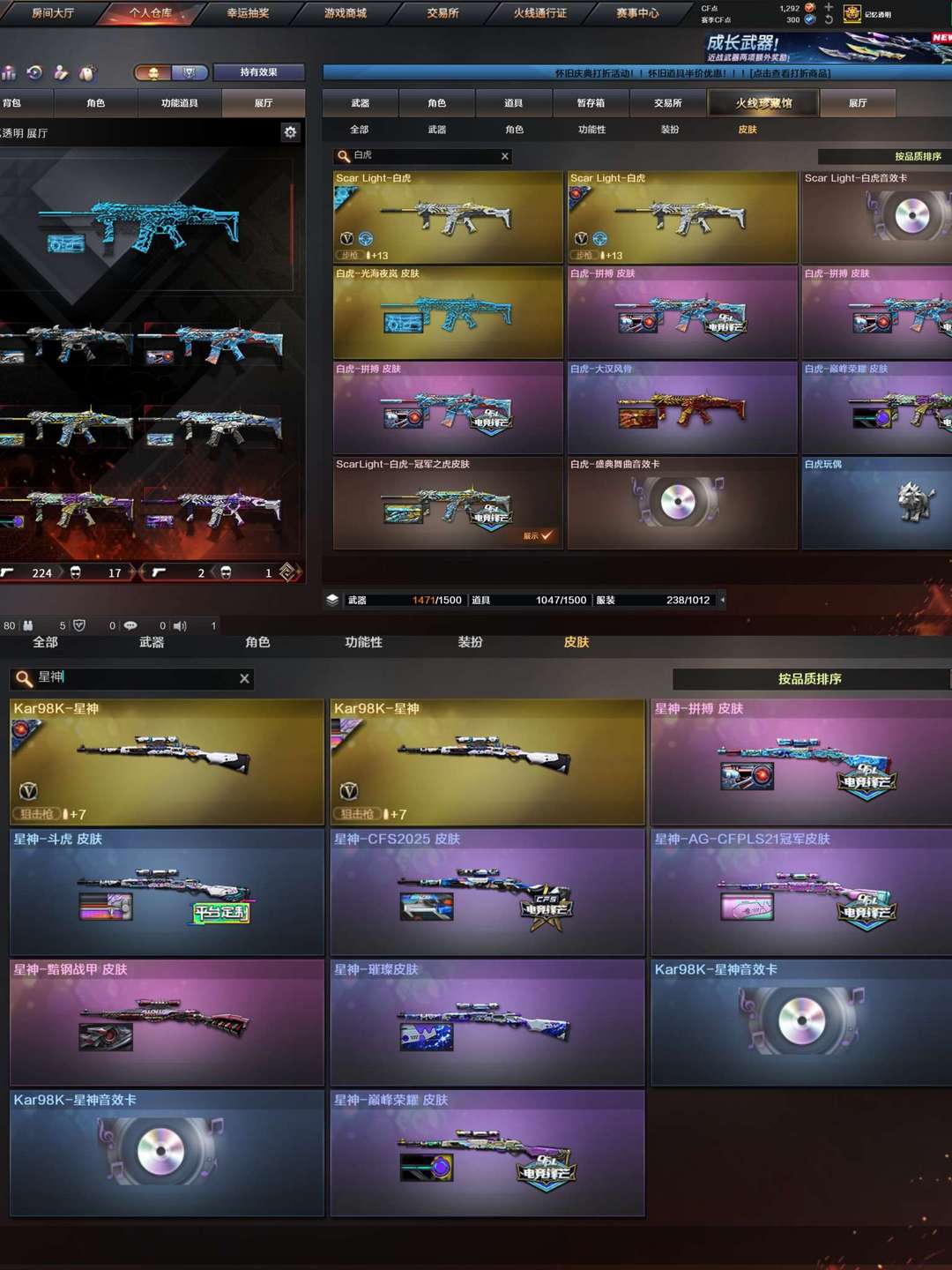 光海白虎/新蓝+粉狮❤️qbz念旧14皮/幻神13皮❤️星骇鹰隼幽瞳❤️裁决满皮星神6皮卡/手枪顶