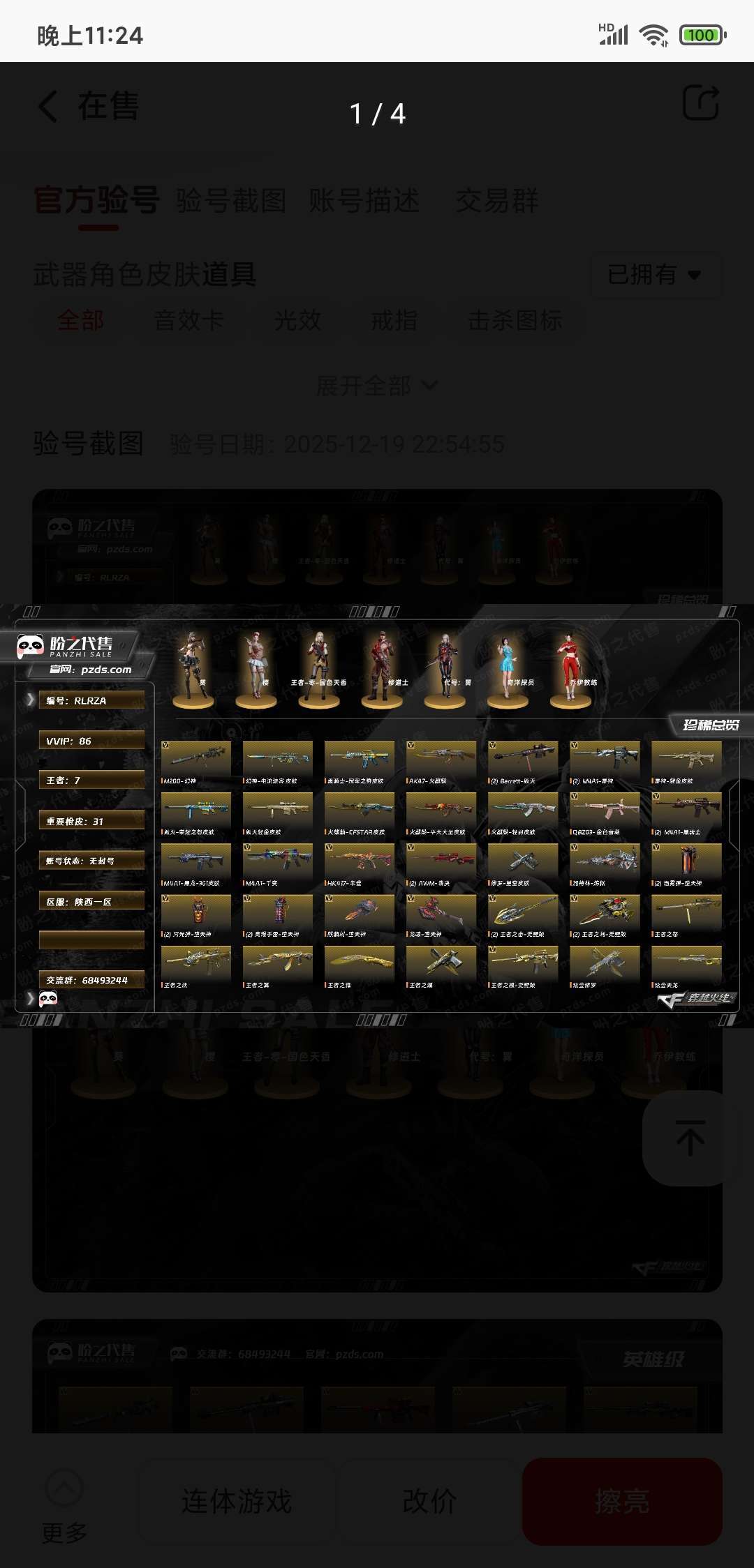装备描述:【Lv.100 高阶大元帅】 86V,7王者,3炫金,幻神电流骇客 /毁灭虹光风暴 /毁灭荣耀之怒/毁灭耀金/极光能量核心/天龙传奇70KG/天龙传奇白鲨/天龙CFSTAR/天龙能量核心/火麒麟CFSTAR/_葵/_樱/M200-幻神/Barrett-毁灭2/Barrett-极光2/Barrett-暗月传说/AWM-天龙/M200-幻神音效卡/M4A1-雷神音效卡/M4A1-黑骑士音效卡/AK47-火麒麟音效卡/Barrett-毁灭音效卡/Barrett-极光音效卡禁止利用账号进行开挂、使用辅助违规软件诈骗等违规操作。
