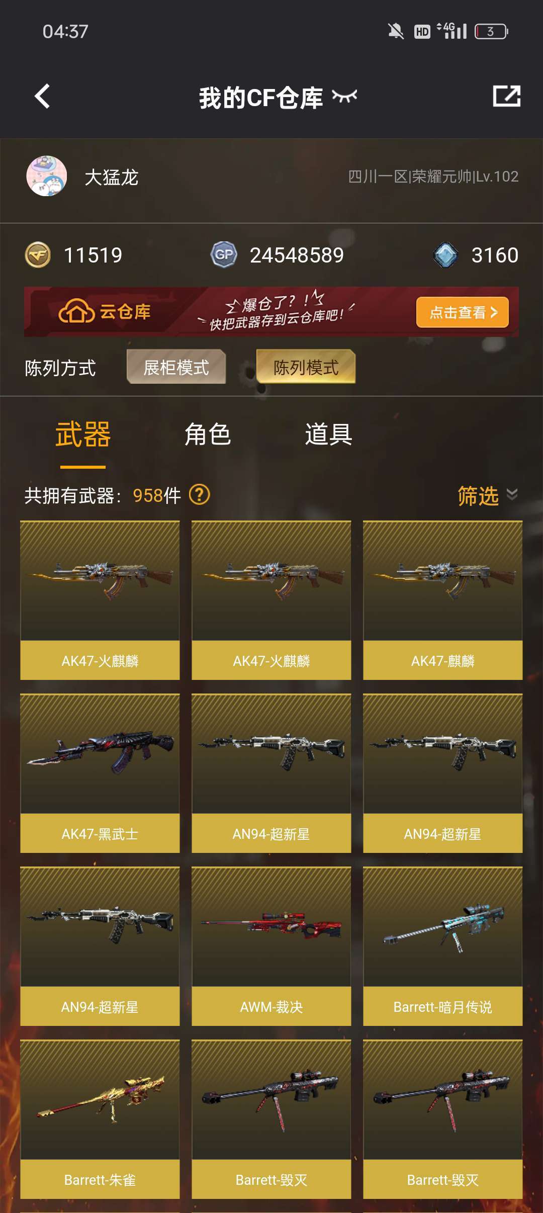 游戏区服:穿越火线-电信区-四川一区