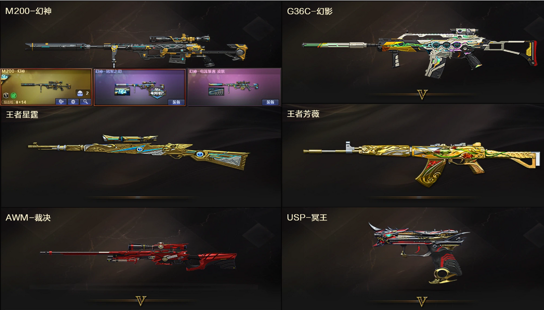 爆破装❤幻神冠军之幻电流骇客+王者星霆裁决❤G36C幻影王者芳薇+冥王USP❤4防潘多拉+3防鹰司雨