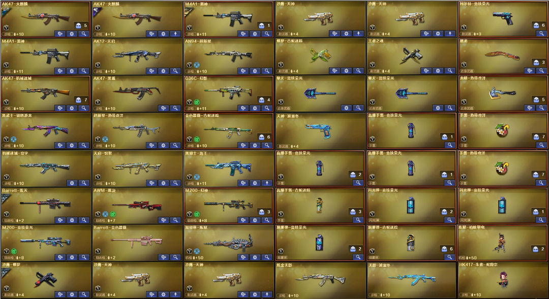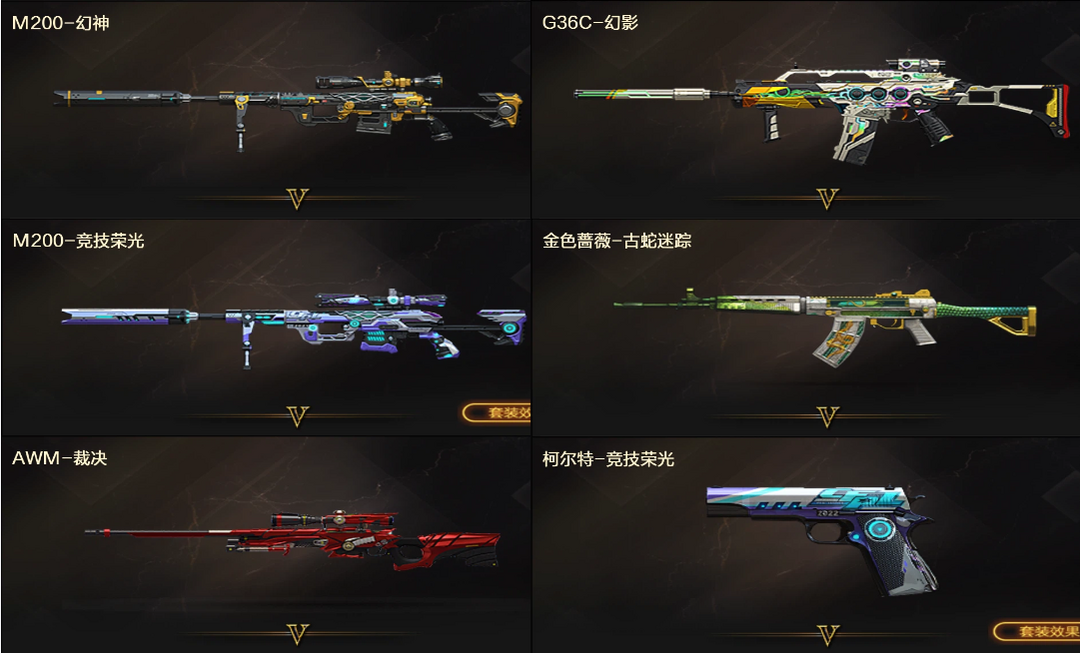 爆破装❤幻神裁决+竞技荣光套❤G36C幻影金色蔷薇+柯尔特❤3防关小雨影豹+雷神毁灭修罗天神屠龙