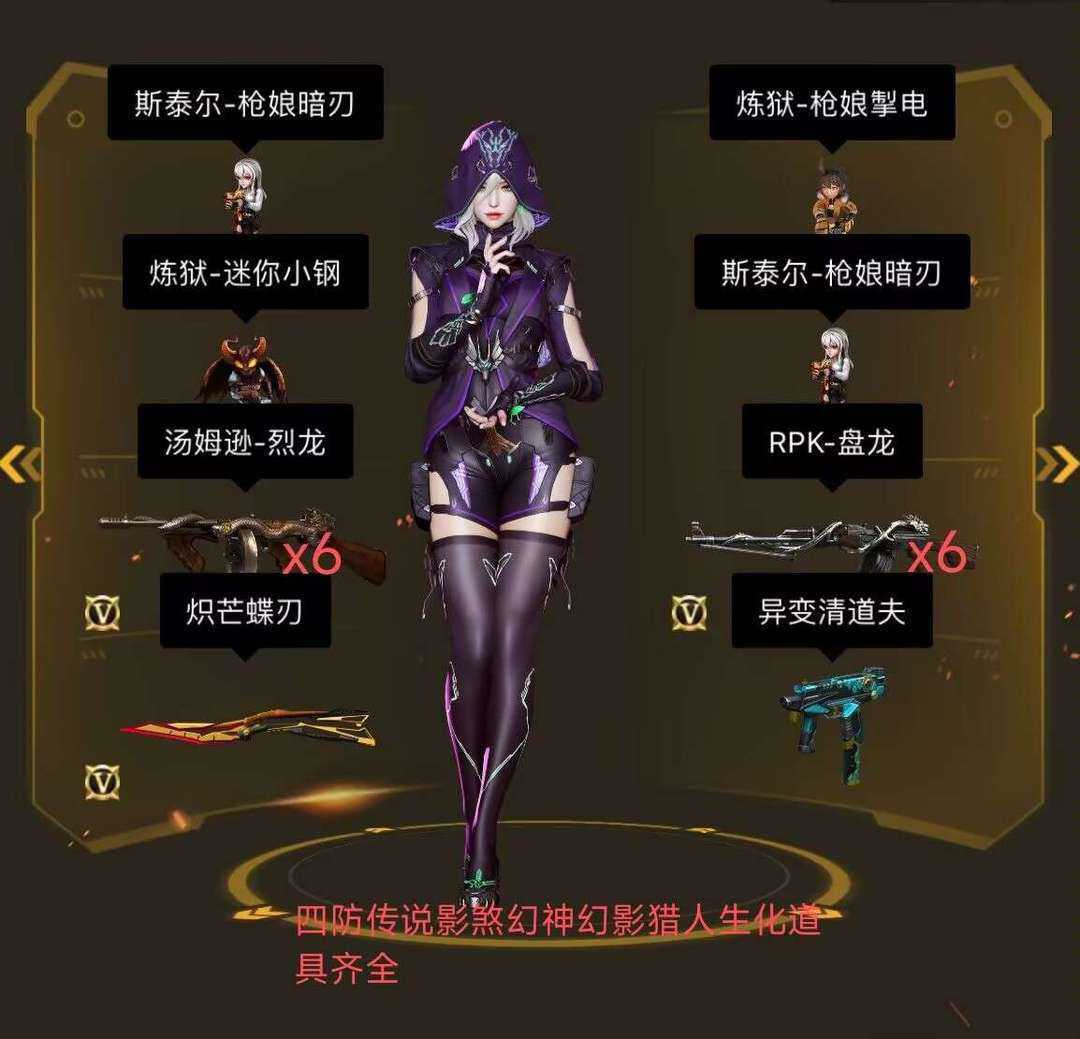 极品生化号✨传说影刹✨炽芒蝶刃✨6烈6盘✨幻神✨机器皮肤幻影猎人皮肤✨斯泰尔枪娘x2✨炼狱枪娘小刚