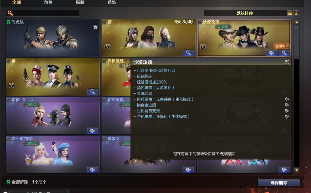 装备描述:者武器:炼狱-悦蓝-觉醒版 英雄武器:屠龙;擎天;龙啸;沙鹰-修罗;汤姆逊-烈龙;RPK-盘龙;加特林-炼狱;Barrett-毁灭;机械迷城-穹宇;炽芒蝶刃;天神-动感闪耀;屠龙-动感闪耀;手雷-动感闪耀;烈火-动感闪耀;无影-神兵利器;AK47-火麒麟;擎天;AK47-B-常胜将军;白虎-电玩蓝兔;汤姆逊-烈龙;Barrett-毁灭;加特林-炼狱;RPK-盘龙;AK47-黑鲨;AWM-裁决;沙鹰-修罗;AK47-无影 角色:樱;葵;沙漠玫瑰;猎狐者;飞虎队;刀锋;海豹突击队;幻影;雷霆-β;复仇者;堕天使;夜玫瑰;威锋;陈龙野;精英部队;灵狐者;烈锋;灵狐者-黄金海岸;影武者-X;龙儿;救世主-X;剑齿虎;暗夜-X;青霞仙子;妲己;紫霞;夜玫瑰-X;麻雀;潘多拉-甜心教官;曼陀罗-礼服;芳心审判者;斯沃特-锋芒精英;兔囡囡;毒蝎-X;超能特工;风暴女;木兰;嘉年华灵狐;铁骑 道具:超级背包;冲锋枪弹匣;忧郁雪人帽;机枪弹匣;步枪弹匣;黑色枪口火焰;防弹头盔;闪光护目镜;生化弹匣;烟雾保护头盔;防化服;绿色巨人;疯狂宝贝;手雷包;防弹衣;灵魂忍者;迷雾幽灵;疯狂宝贝;防化服;妖姬;特殊