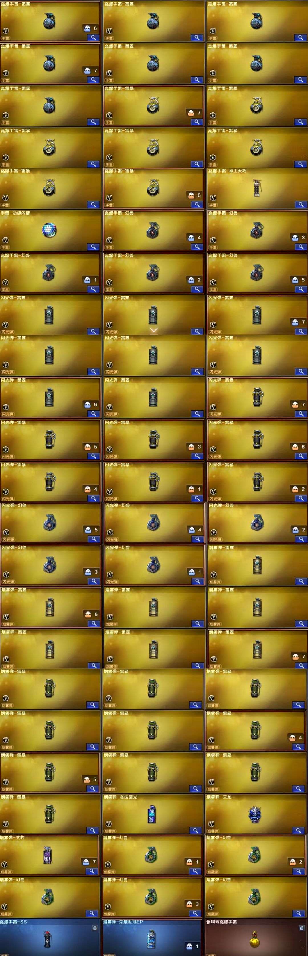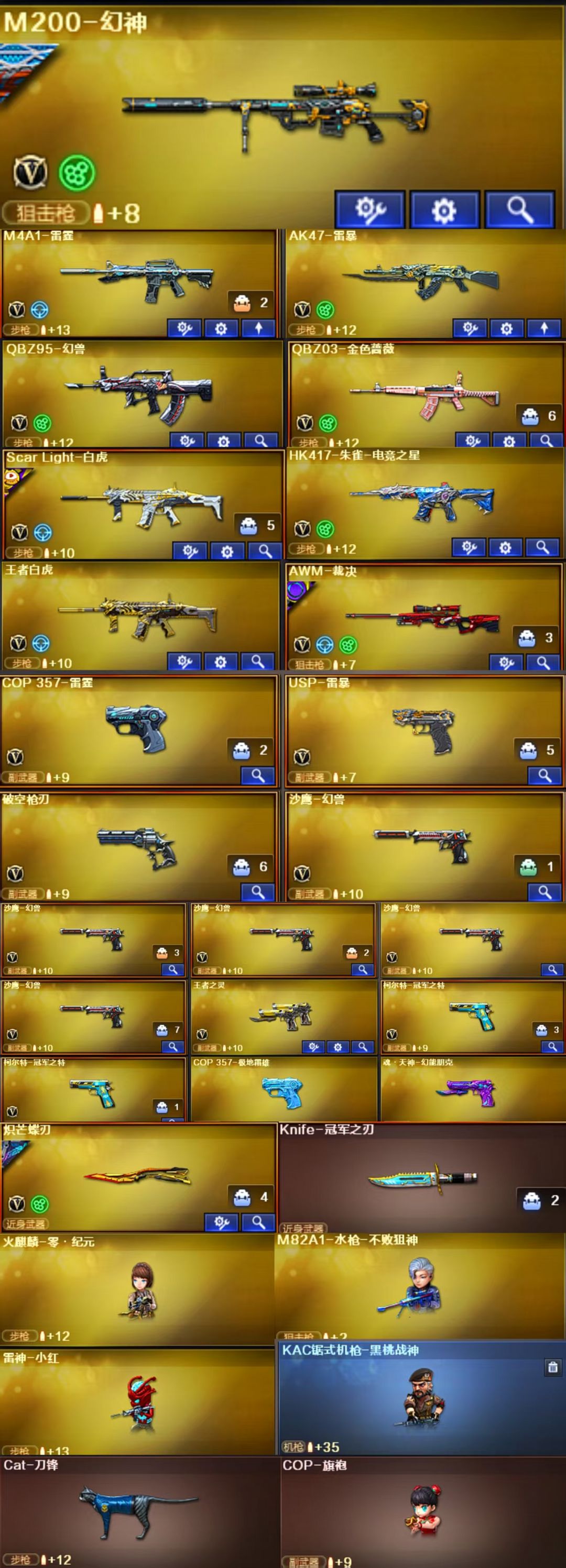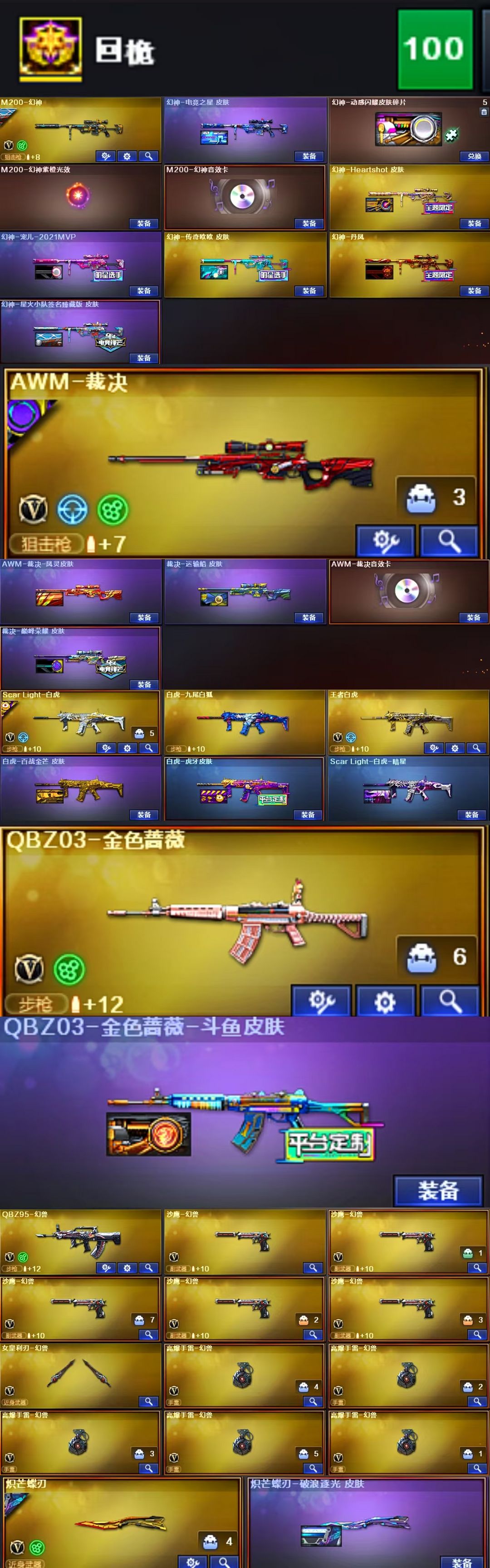 限制: 租号3次及以上 |装备描述:王者武器:王者之幻-觉醒版;炼狱-悦蓝-觉醒版;王者白虎-觉醒版;盘龙-悦心-觉醒版;王者之灵-觉醒版;王者之刺-觉醒版;炫金天龙;炫金武士;炫金修罗;王者之魄-觉醒版;王者之势;王者之魂;炫金黑龙;王者之怒;炫金雷神;炫金毁灭;王者之力;王者之翼;王者之光;王者之武;王者之心;炫金无影;盘龙-悦心 英雄武器:Barrett-碧霄极光;荣耀世冠-火麒麟;丛林匕首-玄豹;烟雾弹-玄豹;机械迷城-穹宇;烟雾弹-竞技荣光;沙鹰-天神;Scar Light-白虎;闪光弹-雷霆;炽芒蝶刃;烟雾弹-云龙;烟雾弹-雷暴;AK47-雷暴;USP-雷暴;斩神刀-雷暴;闪光弹-雷暴;高爆手雷-雷暴;柯尔特-冠军之特;M200-幻神;龙啸-烈火龙威;烈火-动感闪耀;天神-动感闪耀;手雷-动感闪耀;屠龙-动感闪耀;高爆手雷-神工天巧;无影-神兵利器;AK47-火麒麟;加特林-炼狱;AK47-无影;M4A1-武圣;Glock18-武圣;AA-12-雷霆;9A91-烈火;M4A1-黑骑士;AK47-黑鲨;AK-47-猩红传说;擎天;AK47-黑武士;雷霆之怒;M4A1-雷霆;高爆手雷-雷霆;烟雾弹-雷霆;雷霆之契