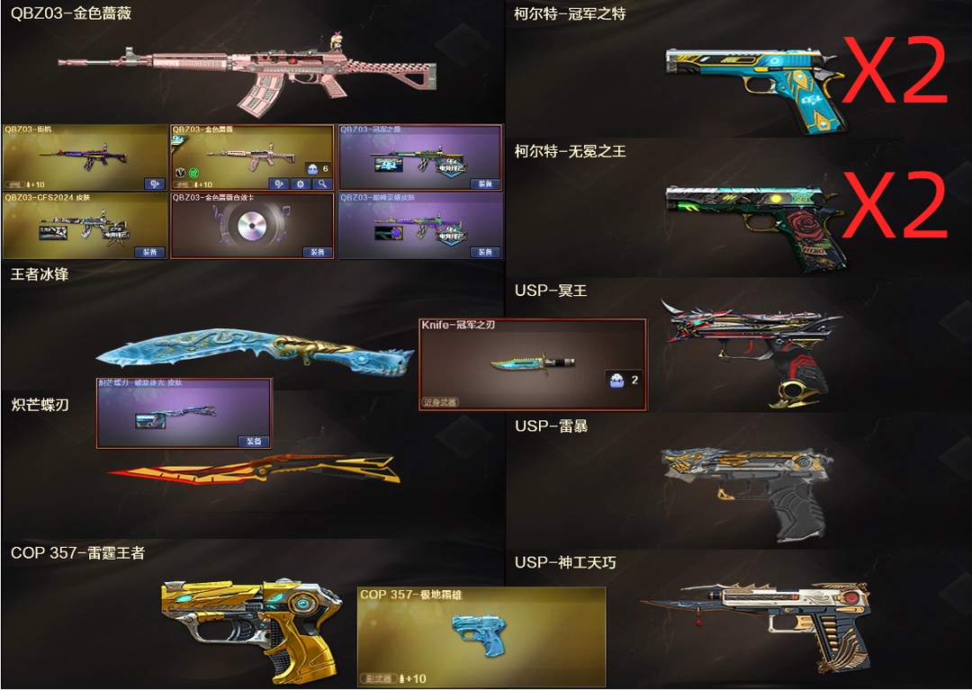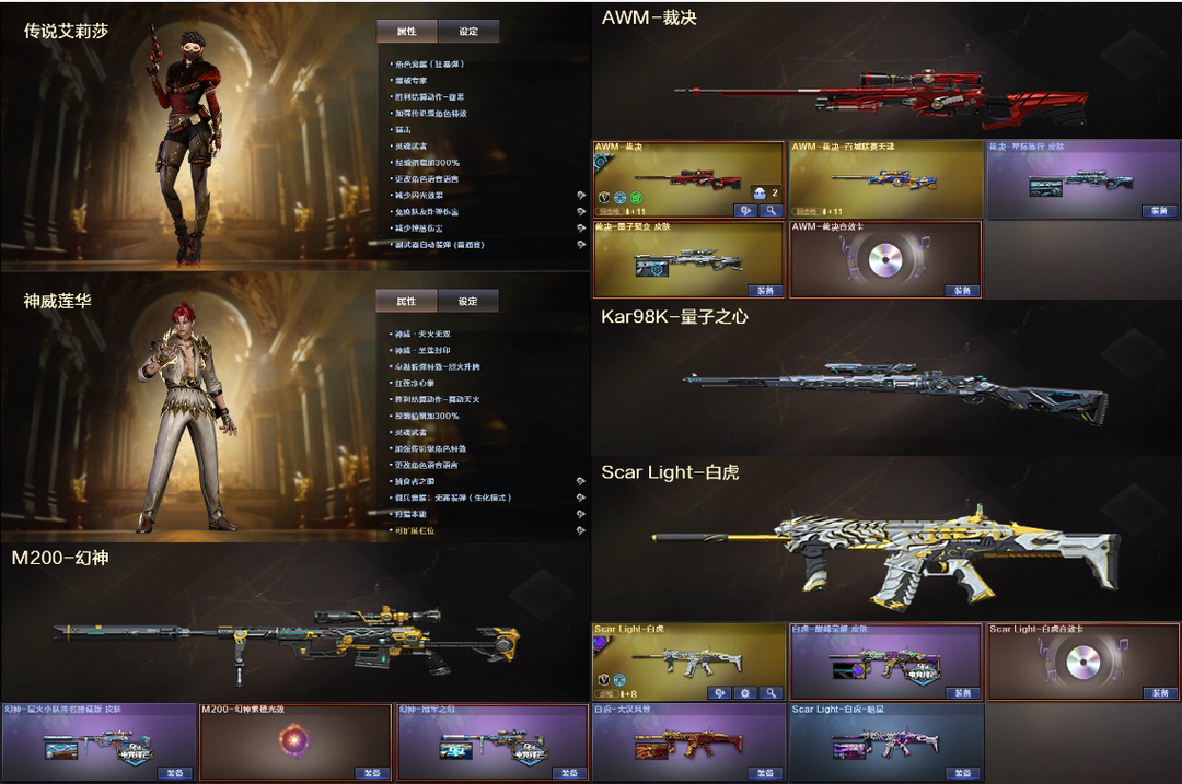 4防艾莉莎神威莲华✅幻神星火冠幻+裁决量子星际音效♉量子套白虎QBZ三件套+9满副炽芒小刀♉金狮小钢