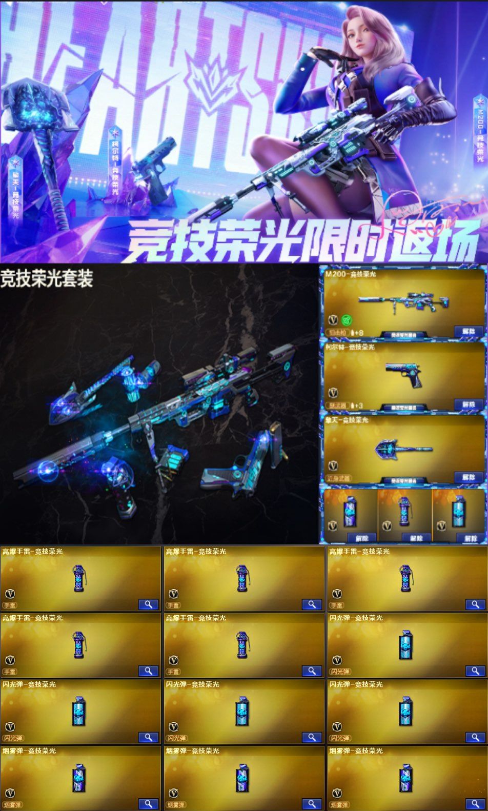 竞技荣光套装⭐6套竞技手雷包⚡生化变更背包⚡无需换弹⚡斯泰尔蝴蝶⚡清道夫小人枪⚡六烈