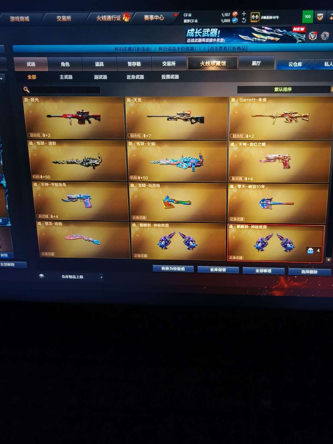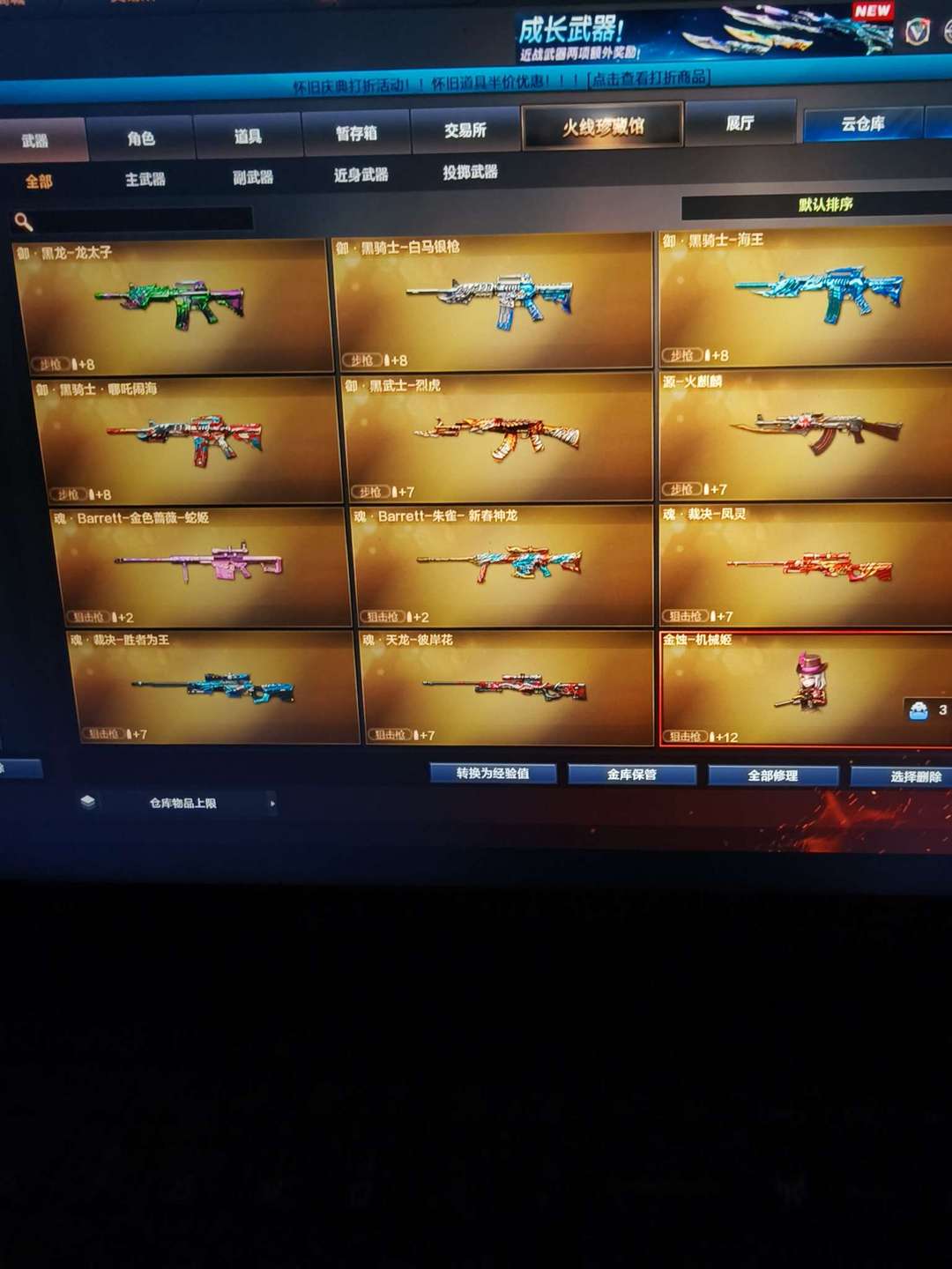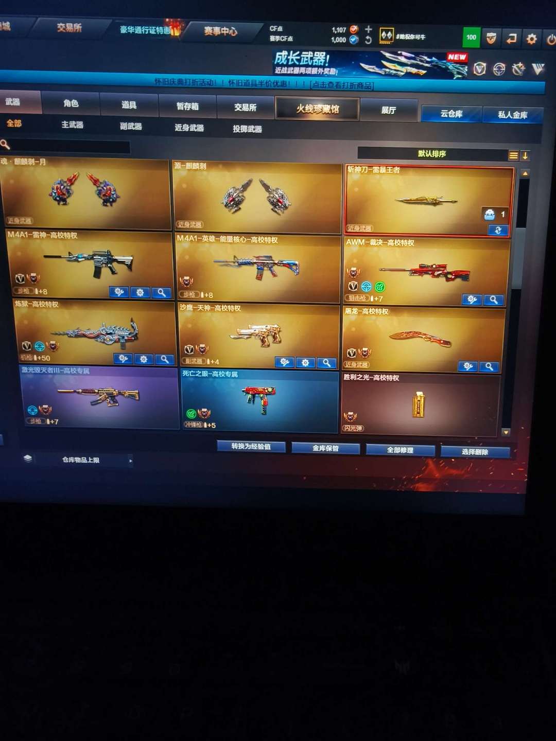 雷 竞技荣光全套 FAMAS天戎炽芒蝶 AK47雷暴王 QBZ金色蔷薇投掷雷暴王者等众多稀有武器