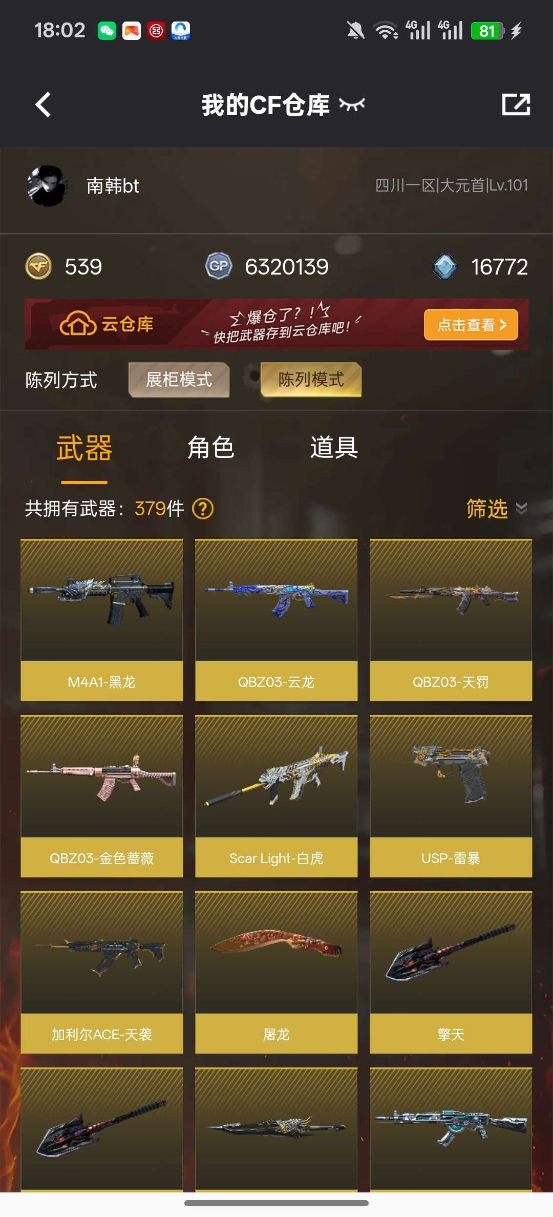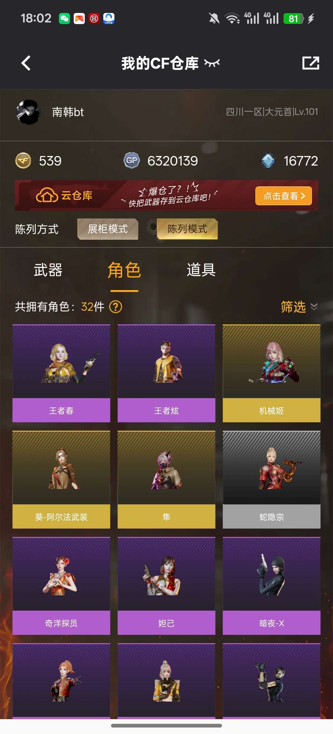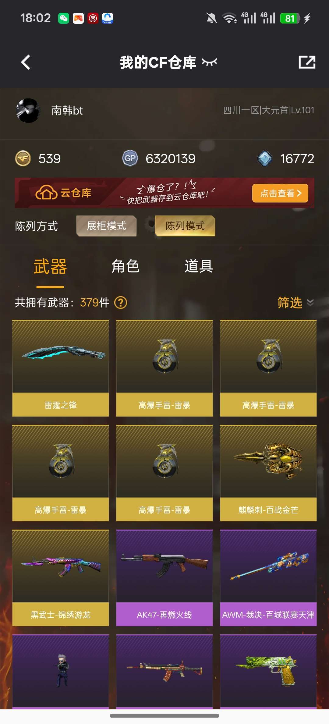 游戏区服:穿越火线-电信区-四川一区