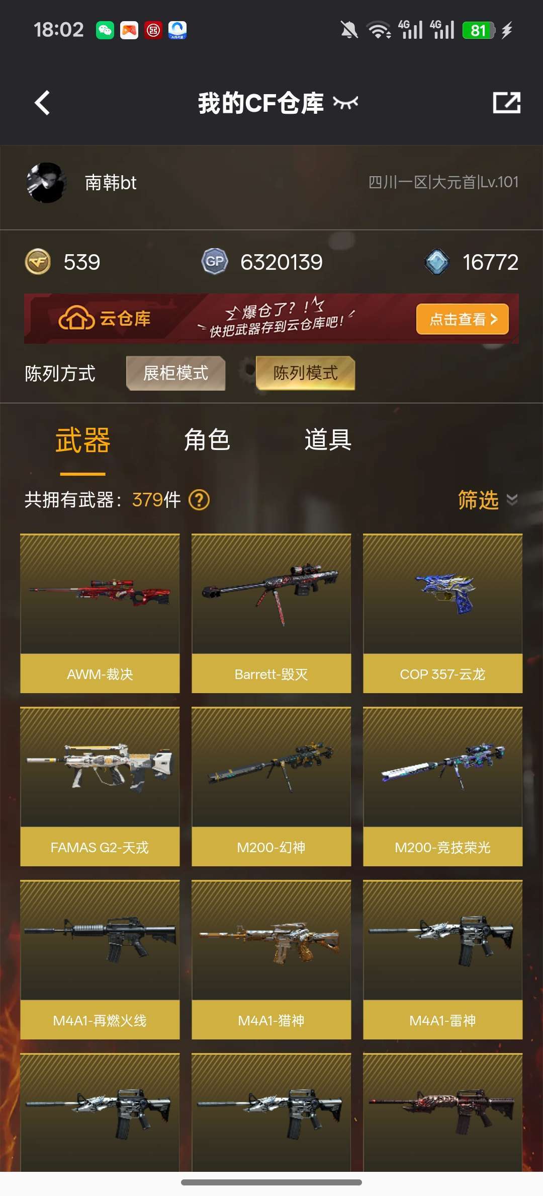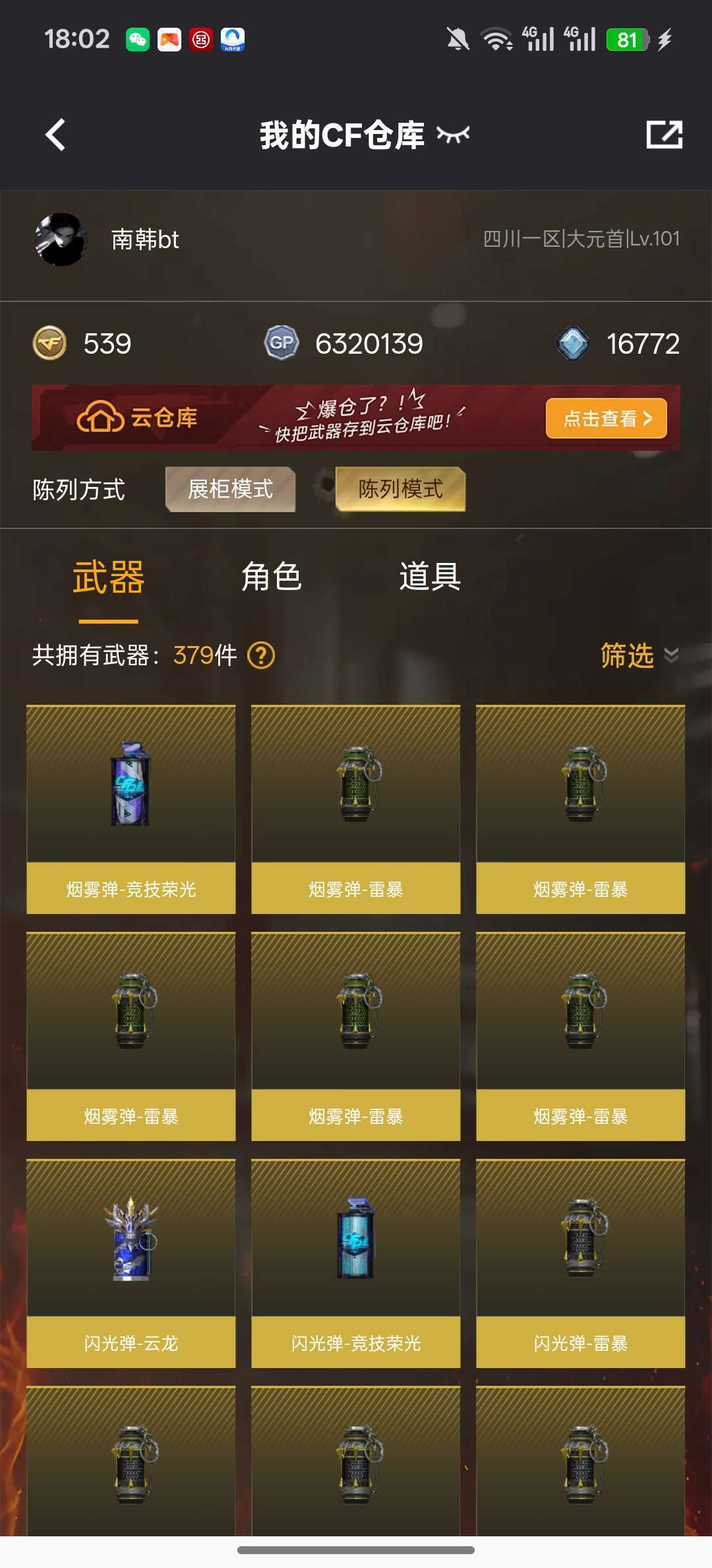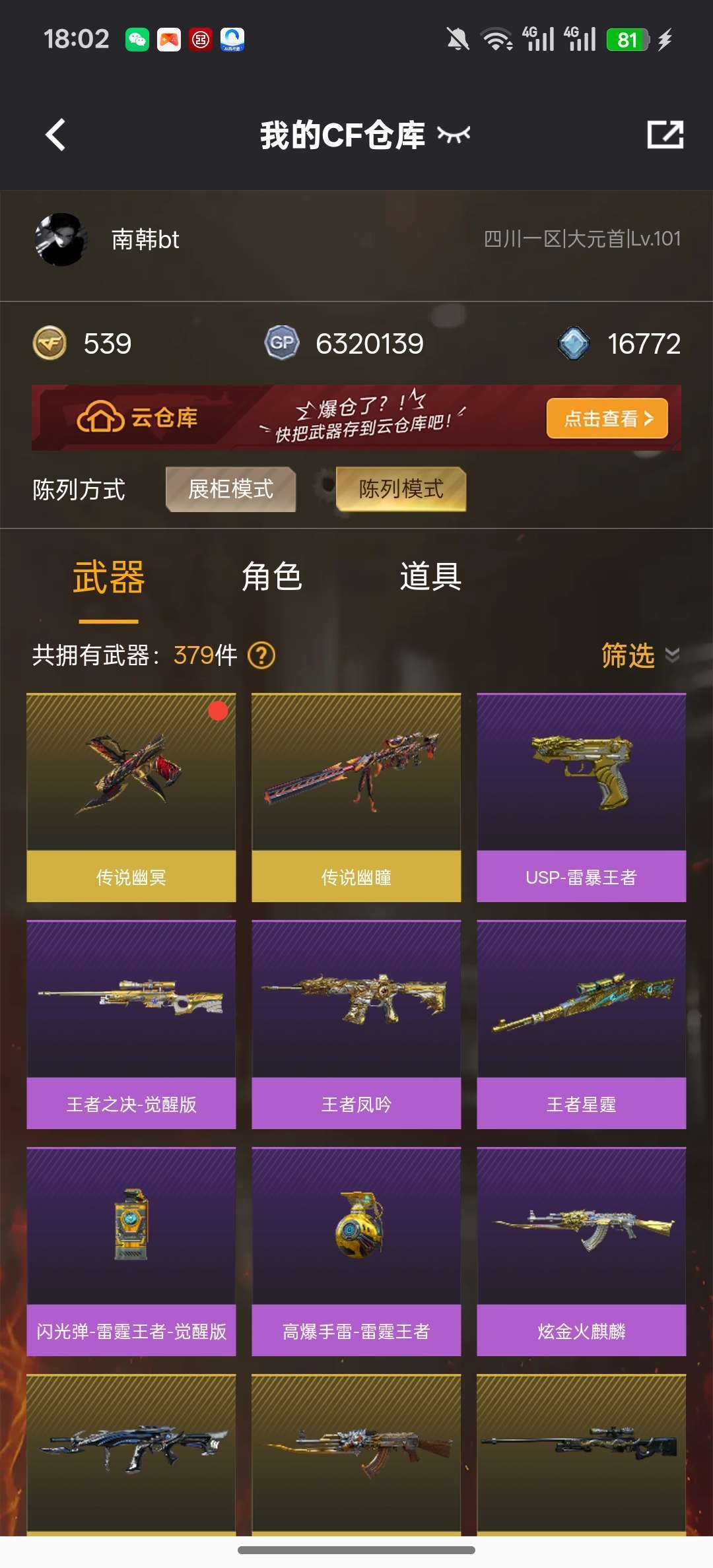 游戏区服:穿越火线-电信区-四川一区