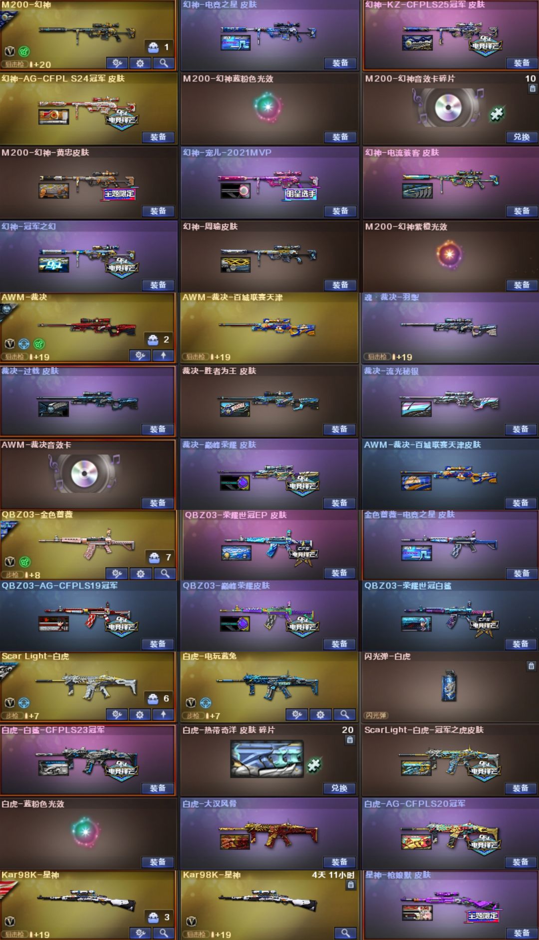 星骇KZ幻影天袭天戎金名⭐幻神KZ宠儿冠幻8皮⭐裁决音效卡5皮⭐白虎白鲨冠军4皮⭐QBZ电竞EP5皮