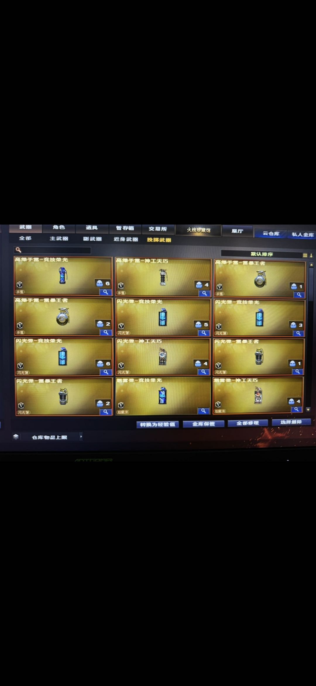 云悠悠竞技荣光全套王者雷暴雷闪光烟雾弹都有