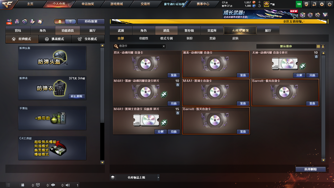装备描述:毁灭音效卡,极光音效卡,qbz金色蔷薇,白虎电玩蓝兔。