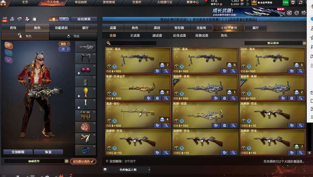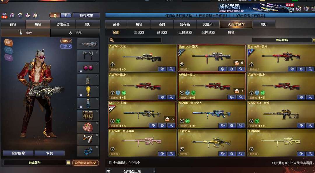 102V 生化爆破全装 神威莲花 隼全四防 幻神 G36C幻影 蝴蝶六烈盘法玛斯 2传说 炽芒蝶刃