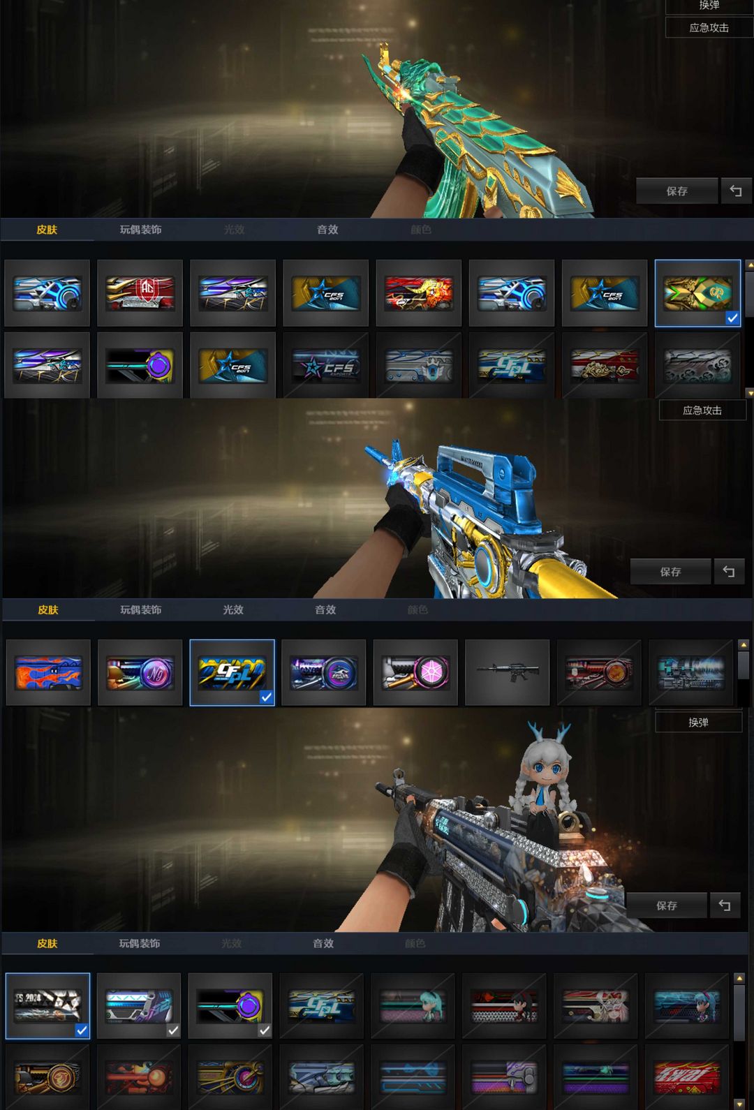 神威天绫加利尔KZ荣耀世冠9皮幻神星神裁决三件套✨圣谕鹰极地霜雄雷暴王者冥王无冕G36蝴蝶刀音效卡全