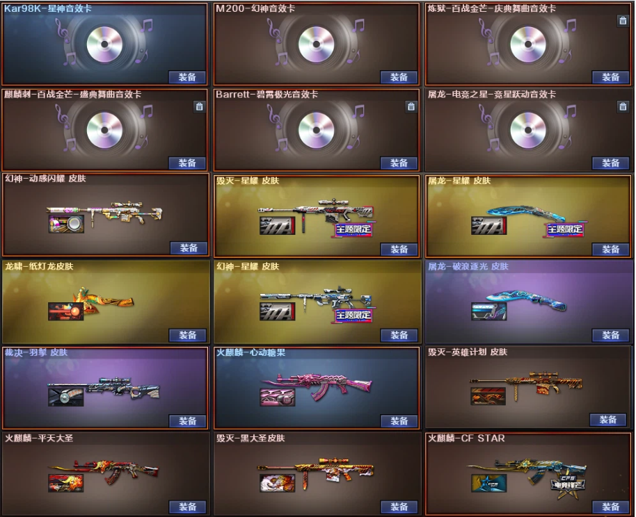爆破⭐幻神动感星耀音效卡+星神音效卡+裁决羽挚⭐QBZ古蛇蔷薇+白虎电玩蓝兔朱雀2柯尔特⭐4防魅影