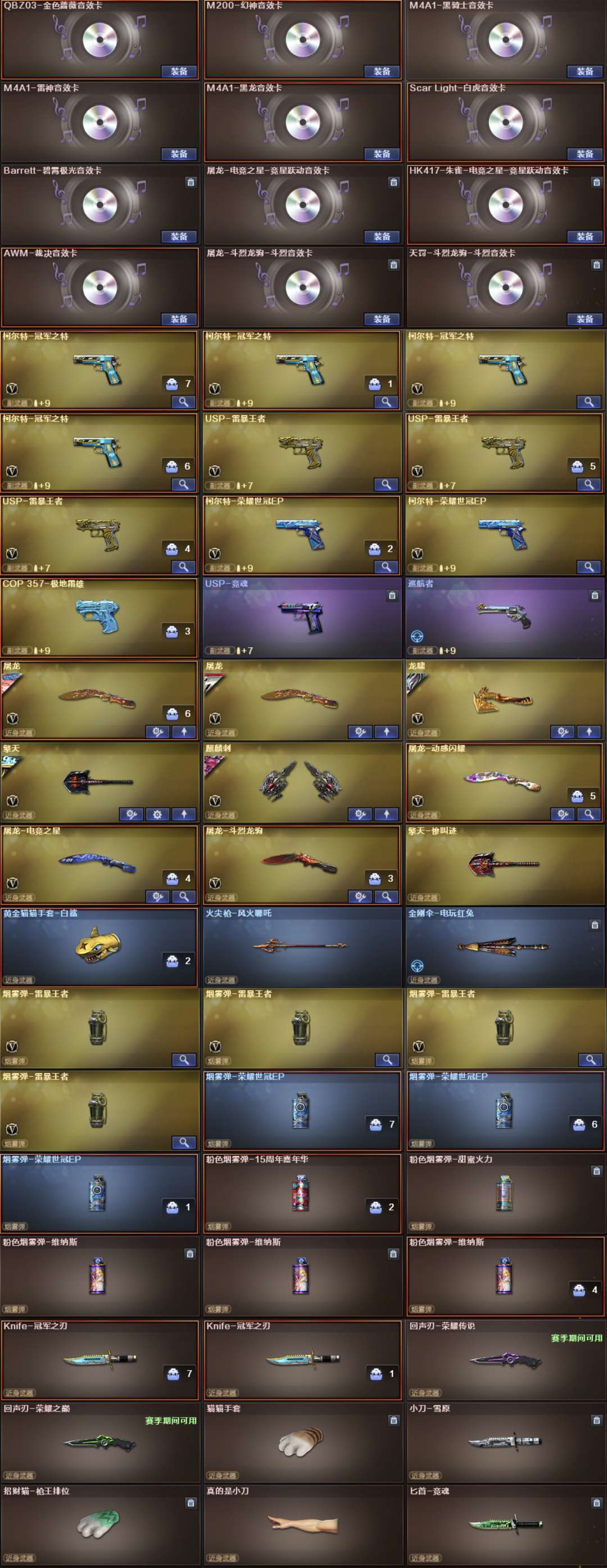 装备描述:南部生化号,带点小爆破,7烈龙6盘龙,3把蝴蝶刀两个皮肤,小人枪有 斯太尔蝴蝶 炼狱狮子,人物是神威莲华,虹儿,爽吃生化,爆破主流武器都有