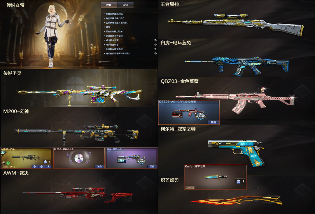 传说圣灵4防女帝✅幻神冠军之幻音效卡+星神裁决♉QBZ蔷薇AG+白虎电玩蓝兔+冠军之特刃炽芒蝶刃