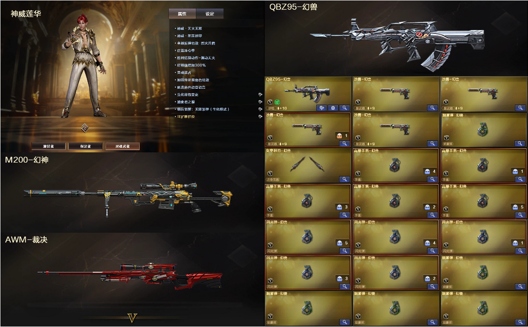 神威莲华+2炼狱3烈龙死亡♉幻神裁决+幻兽5套雷⚡白虎QBZ蔷薇青龙✅2COP雷霆2USP雷暴