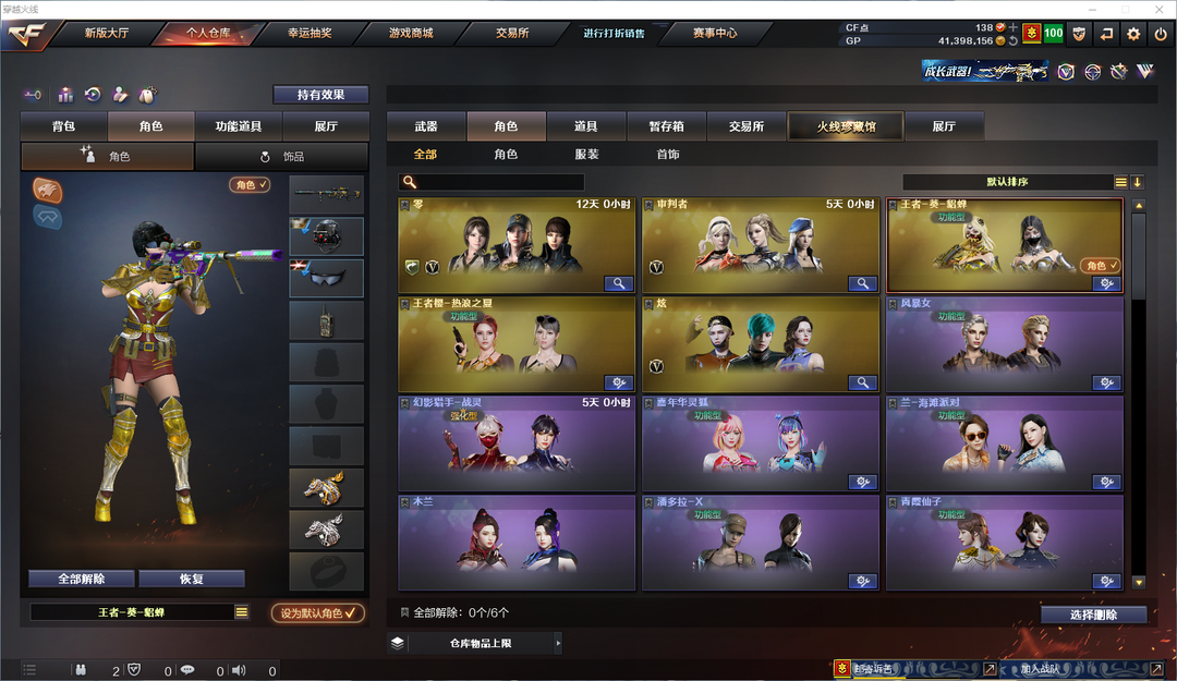 限制: 租号3次及以上 |装备描述:M200-幻神 白虎-电玩蓝兔 黄金猫猫手套-白鲨 幻神-巅峰荣耀皮肤 幻神-周瑜皮肤 幻神-黄忠皮肤 火麒麟-白虎皮肤 雷神-R.LGD-CFPLS18冠军皮肤 雷神-荣耀之魄皮肤 耀金赛事皮肤 多光效玩偶 黑龙音效卡 黑骑士音效卡 全雷霆王者套装 堕天神套装 M37-葵 擎天-惨叫迹 金刚伞 黄金生化钩 迷你生化手雷 30王者炫金 25皮肤 炼狱 30步枪 7狙 7副 7近身 19雷 5角色 稀有武器等等。请素质租号,文明游戏,谢谢大家配合!!!
