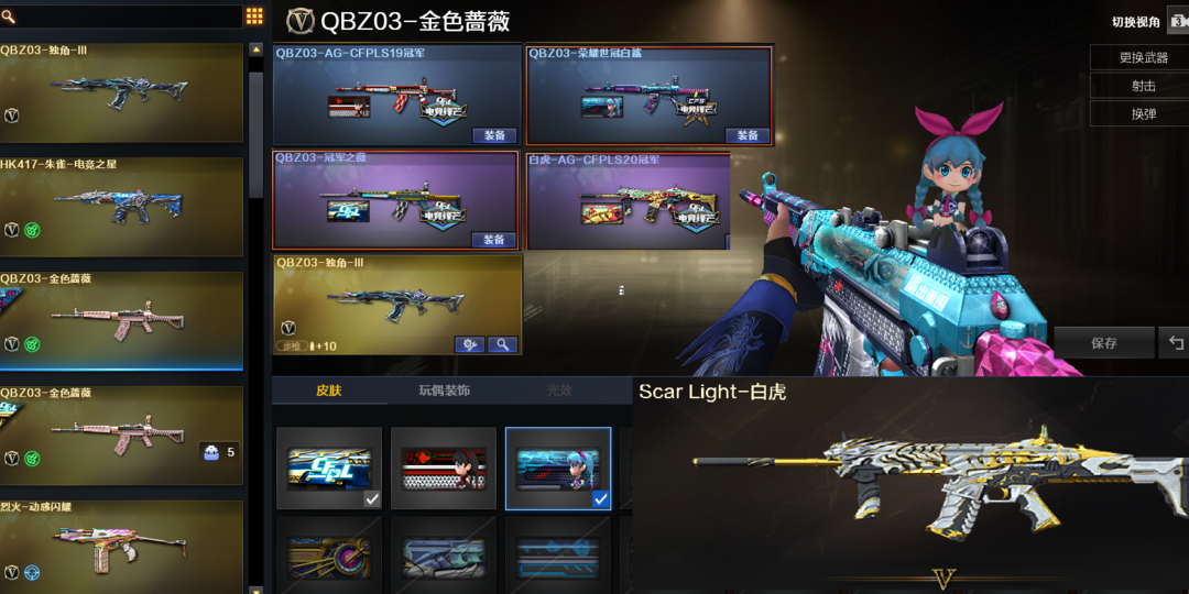 143豆✨传说女帝艾莉莎✨幻神音效白鲨动感✨星神璀璨QBZ冠军微AG白鲨白虎AG冠军满副柯尔特USP
