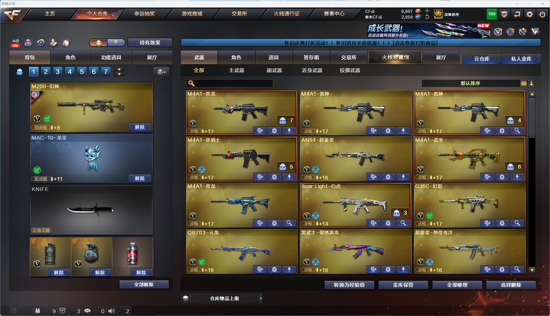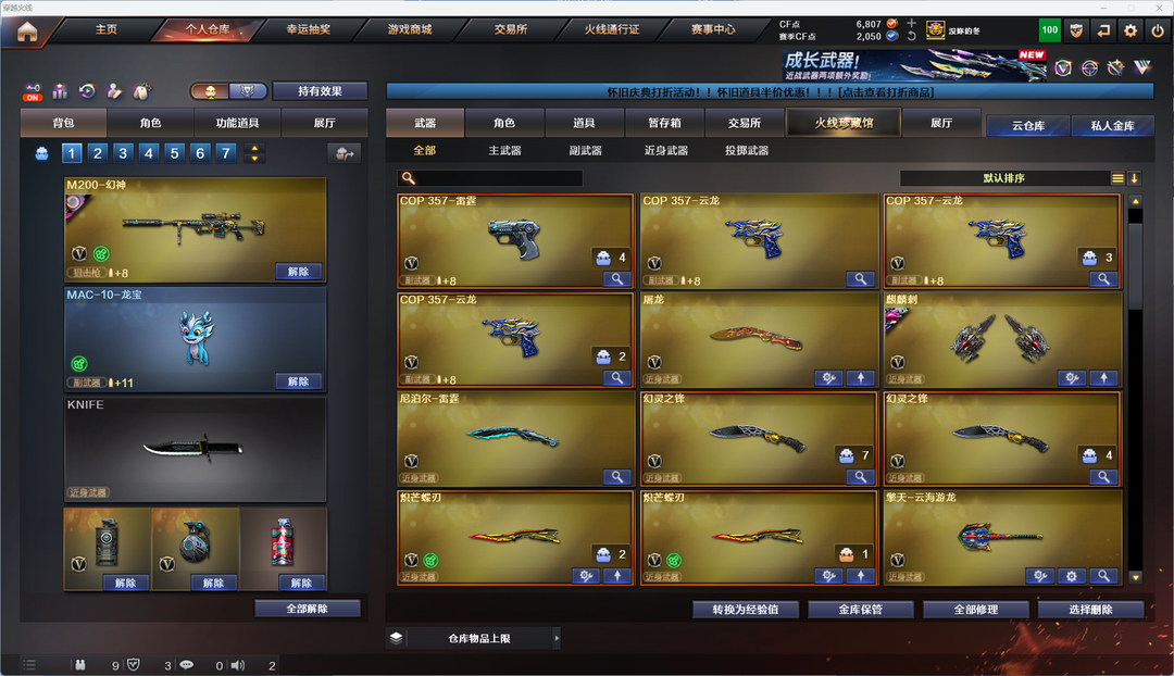 宠儿幻神2把蝴蝶刀+MAC龙宝白虎带白虎音效卡G36C幻影云龙全套3把云龙雷霆COP