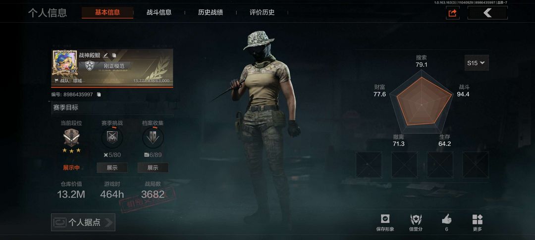 突击匕首 仓库价值13.2M  纯币8970k 四格安全箱 5级信誉