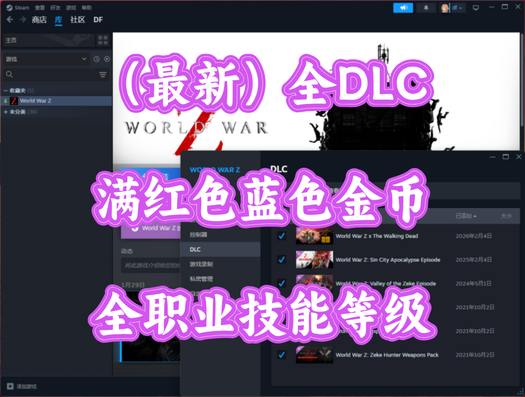 装备描述:最新全DLC!行尸走肉+凤凰城+拉斯维加斯《僵尸世界大战:劫后余生》全满级!