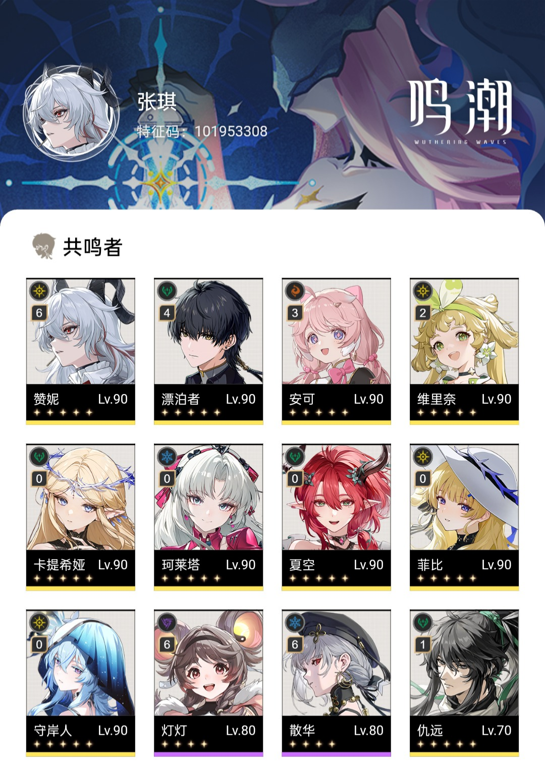 一命仇远+专武♥66金♥满命赞妮+专武♥夏空卡提希娅菲比守岸人柯莱塔+专武♥看图
