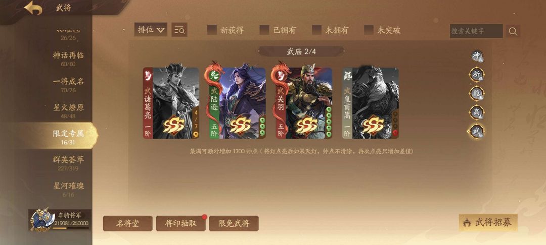 双武庙471将7神武谋荀司马,谋贾诩姜维威权许靖藤玄圣祈福强将全钟毓谋邓艾威只差董卓新将全租号看简介