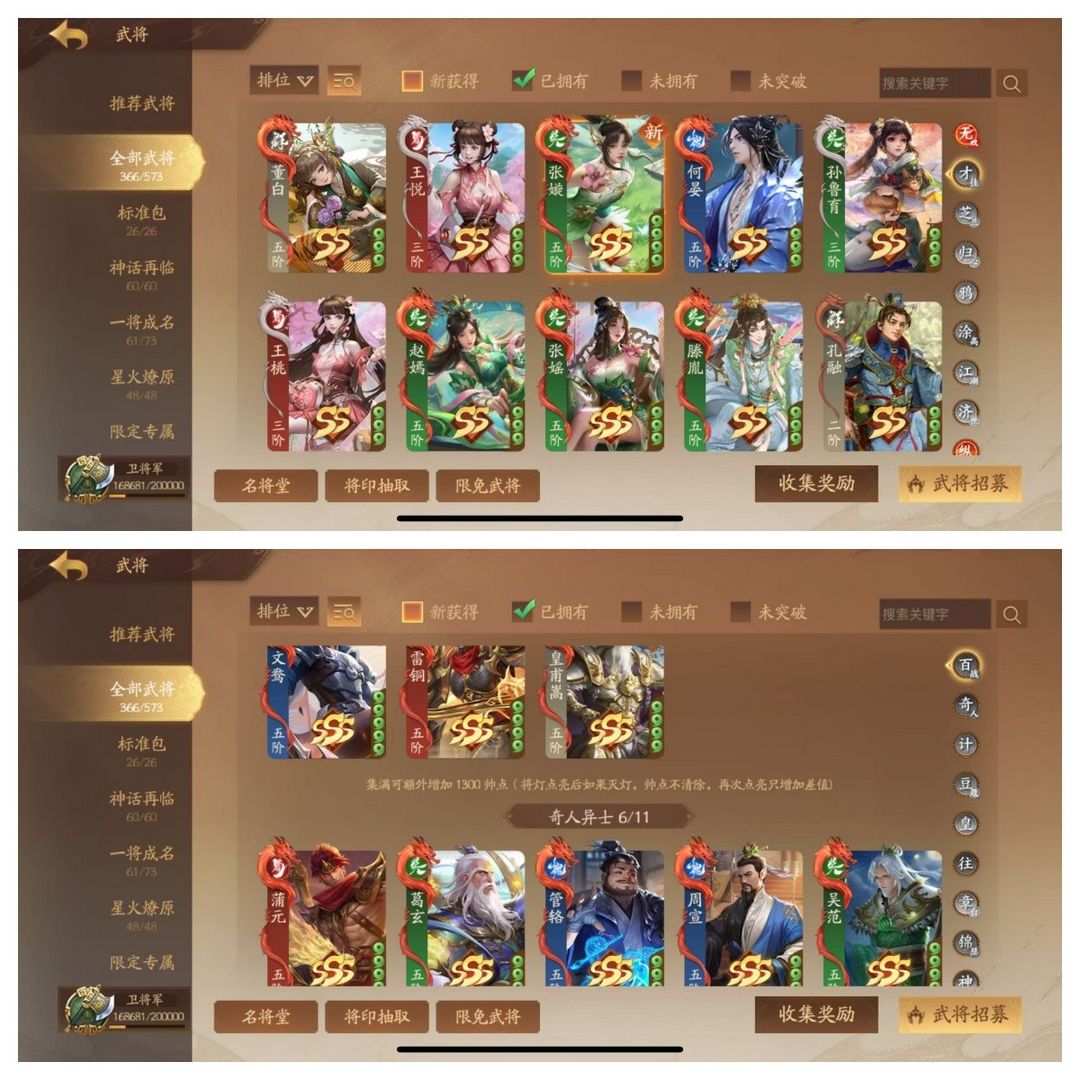 卫将军375将4神武/许靖张怀庞宏曹芳诸葛均神黄忠周宣乐貂蝉神马超薛灵雲乐蔡文姬张嫙庞会许劭水龙动