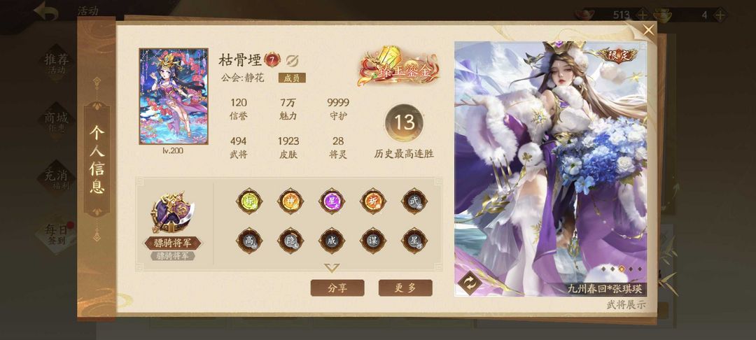 494将八神武三威五大谋七乐骠骑+臻玉鎏金威吕布威孙权威曹丕神黄忠神庞统神钟会