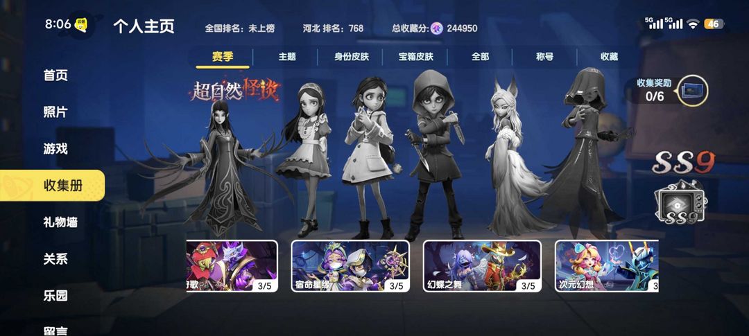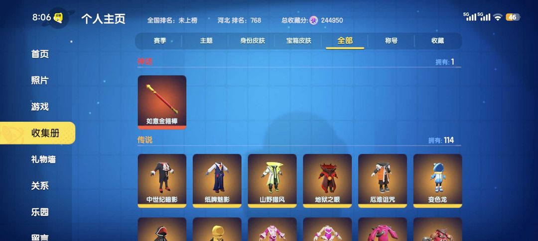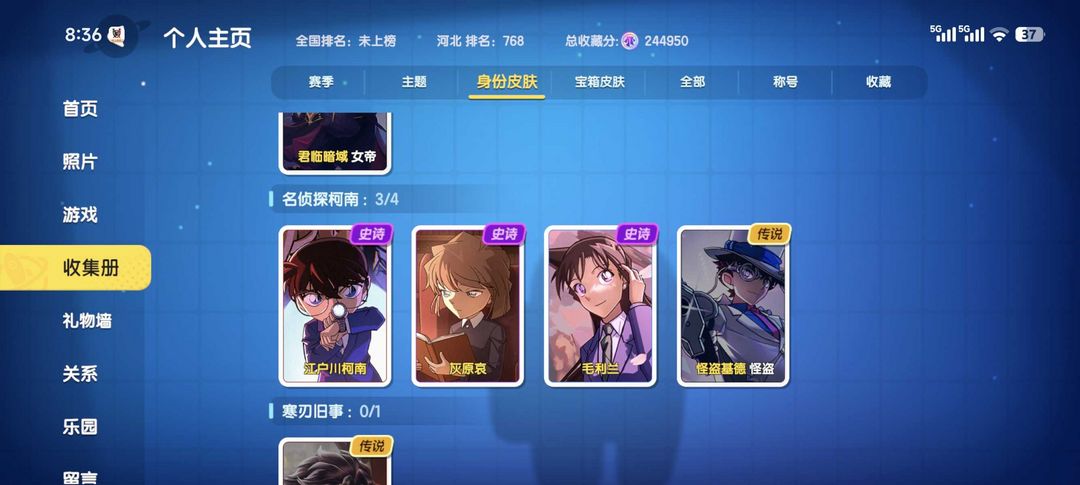 太空杀V7账号白菜价出租,全身份排位赛等级王者,神话传说史诗稀有皮肤若干,身份皮肤很多,称号宠物都有