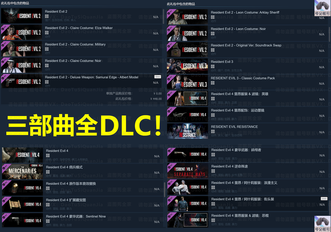 生化危机4重制版❤️398元豪华版✨含234三部曲♋全DLC✅租号送修改器!✅无限装备武器弹药!