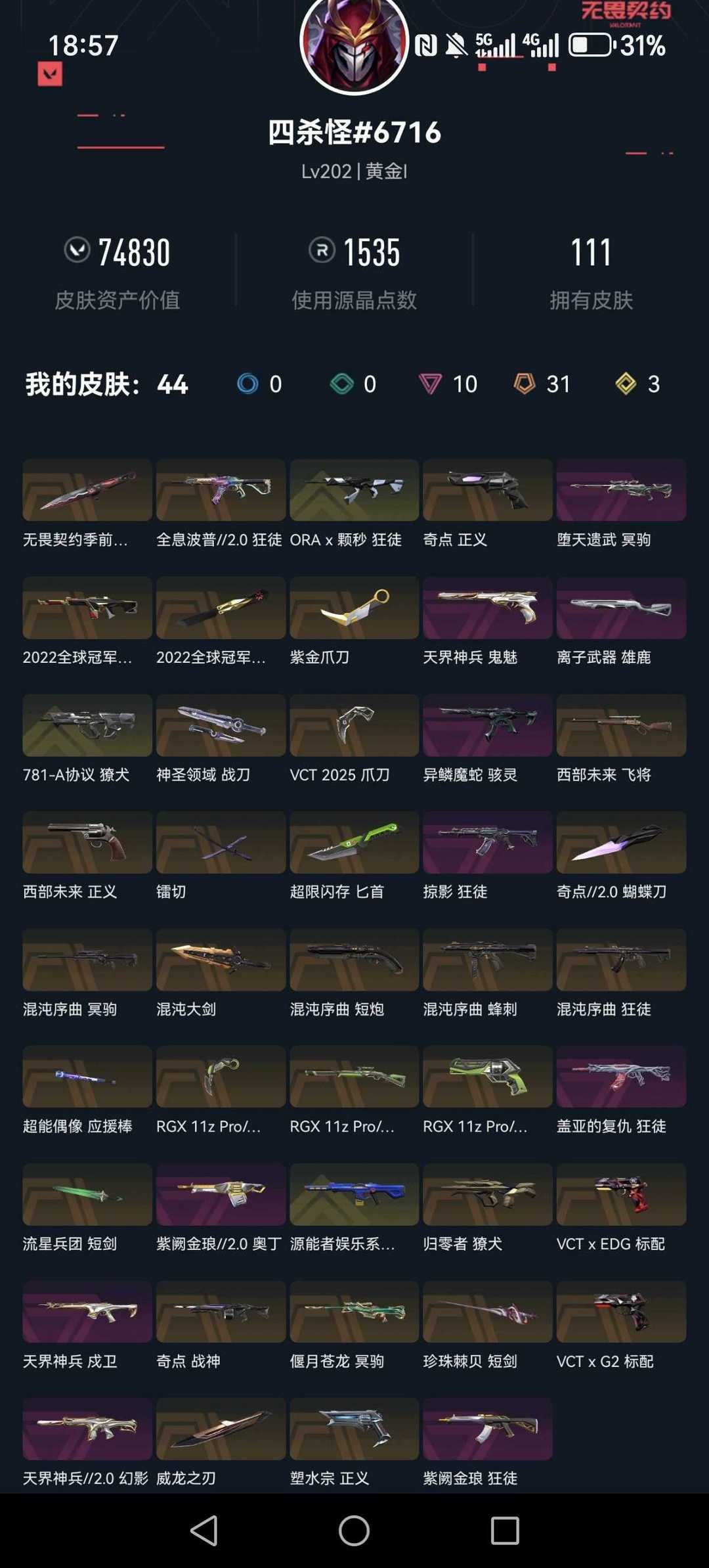 装备描述:八万库存可排位+VCT爪刀+混沌套+显卡套+22冠军+怜悯+颗秒+全息+边陲
